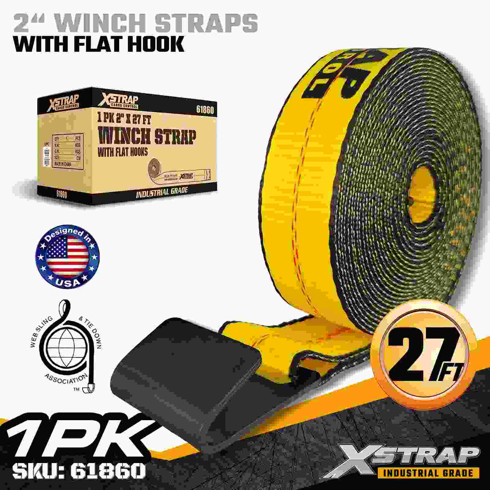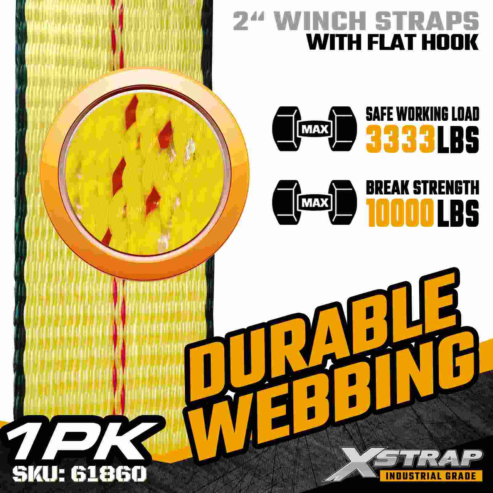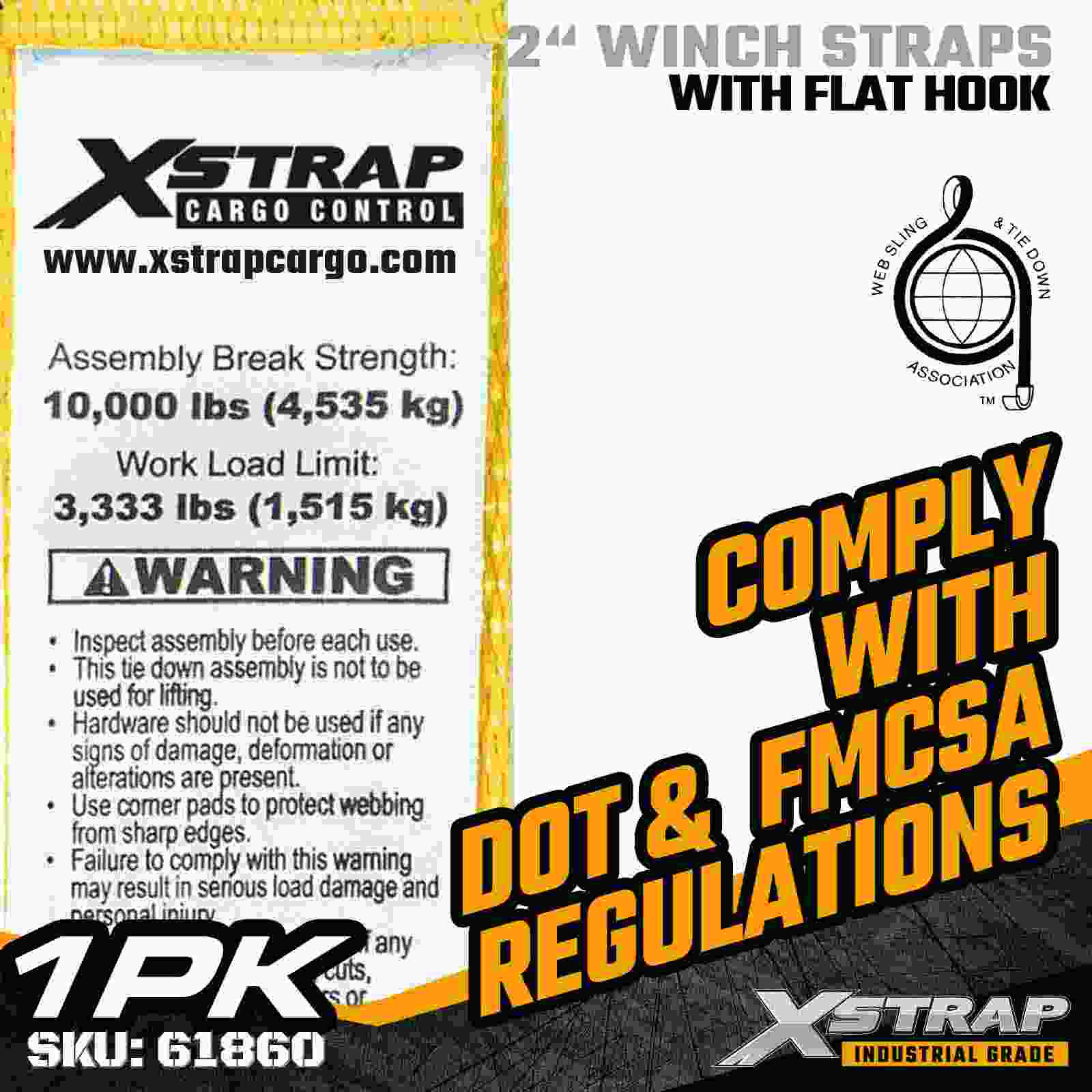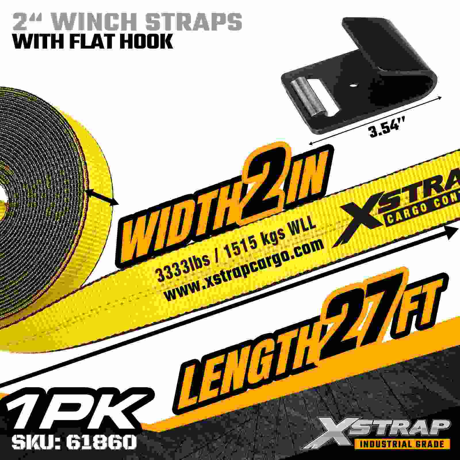 Xstrap 61860 2" × 27 ft Standart Vinç Kayışı, güçlendirilmiş Düz Kanca ve yüksek mukavemetli polyester dokumaya sahip, güvenilir düz yataklı kargo güvenliği için üretilmiştir. 3.333 lbs Çalışma Yükü Limiti ve 10.000 lbs Kopma Dayanımı ile günlük yük taşımacılığı, palet yükleri, kereste ve genel lojistik uygulamaları için güvenilir performans sunar.