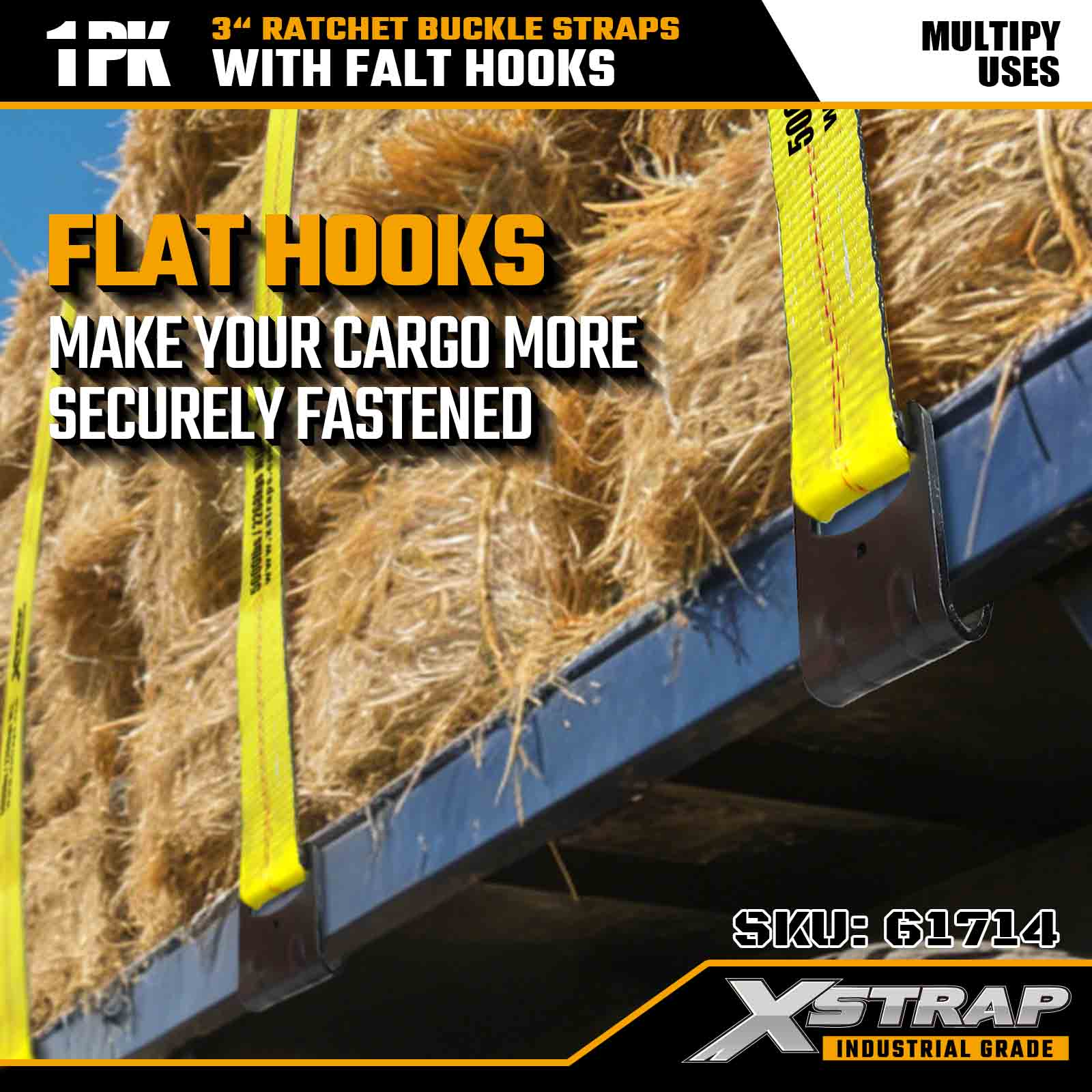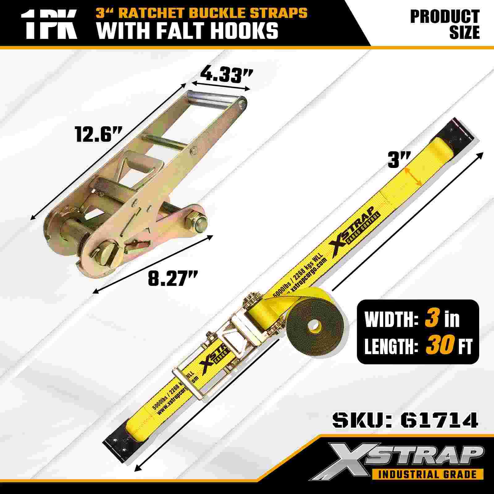 Xstrap 61714 3" x 30 ft Cırcır Tokalı Kayışlar (1 Paket) – Düz Kancalar, 5.000 lbs Yük Kapasitesi, 15.000 lbs Kırılma Mukavemeti, Kamyonlar, Römorklar ve Endüstriyel Kargo Taşımacılığı için Ağır Hizmet Tipi Bağlama.