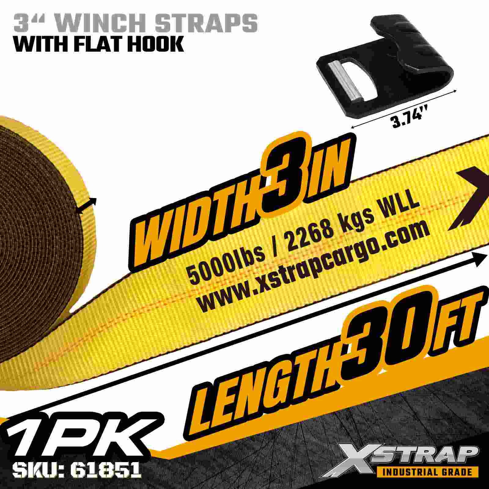 Xstrap 61851 3" × 30ft Standart Vinç Kayışı, düz yataklı treylerler ve yüksek kapasiteli taşıma için tasarlanmış ağır hizmet tipi bir kargo emniyet kayışıdır. Güçlendirilmiş Düz Kanca ve ekstra geniş 3 inçlik polyester dokuma içeren bu 3 inçlik vinç kayışı, 5.000 lbs Çalışma Yükü Sınırı ve 15.000 lbs Kopma Mukavemeti sunar. Zorlu koşullar altında kereste, çelik, makine ve endüstriyel yüklerin emniyete alınması için idealdir. taşıma işlemleri.