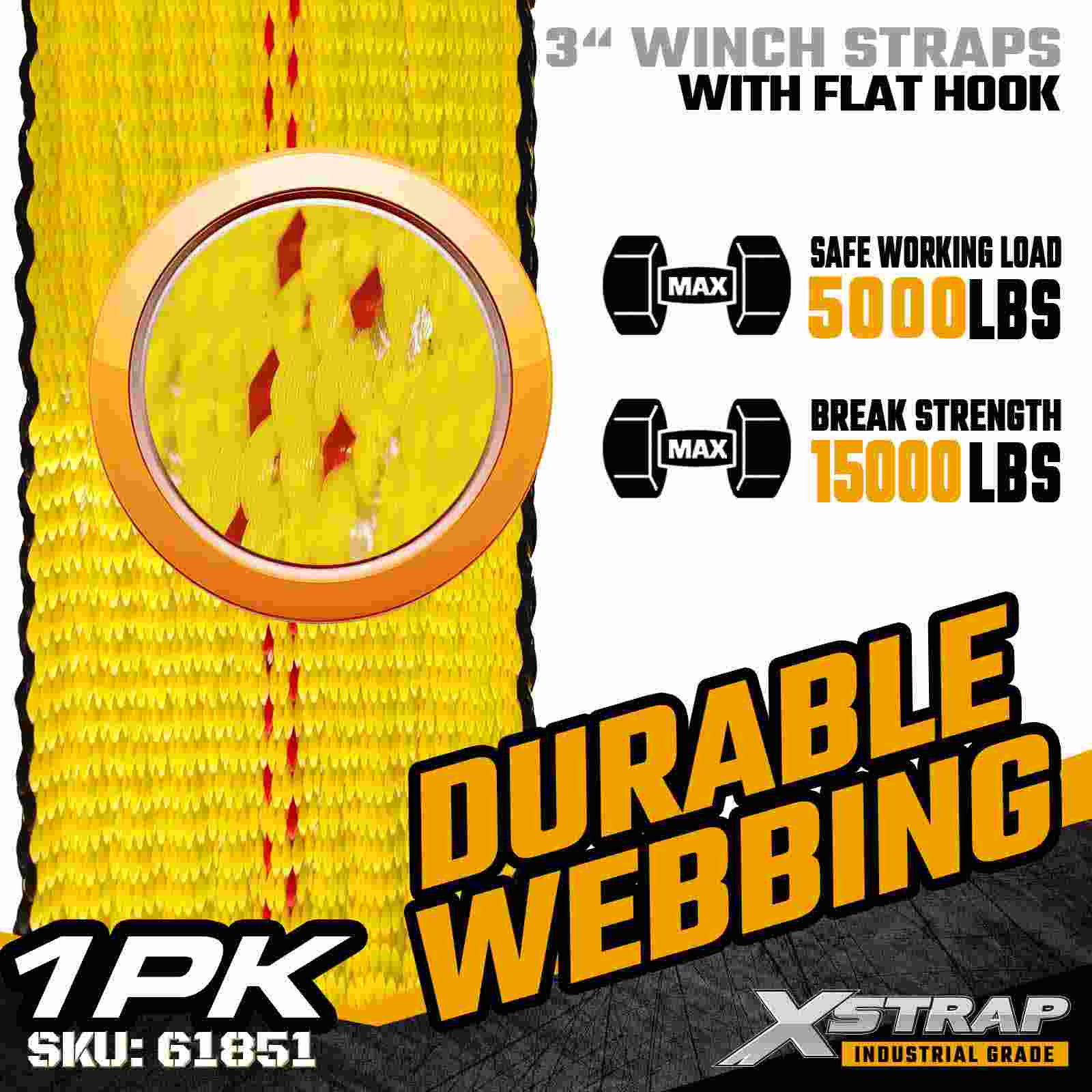 - Üstün Stabilite için Ekstra Geniş 3" Polyester Ağ: 3 inçlik ağ, ağır veya hassas kargo taşınırken yüzey temasını arttırır, basınç noktalarını en aza indirir ve yük stabilitesini artırır.