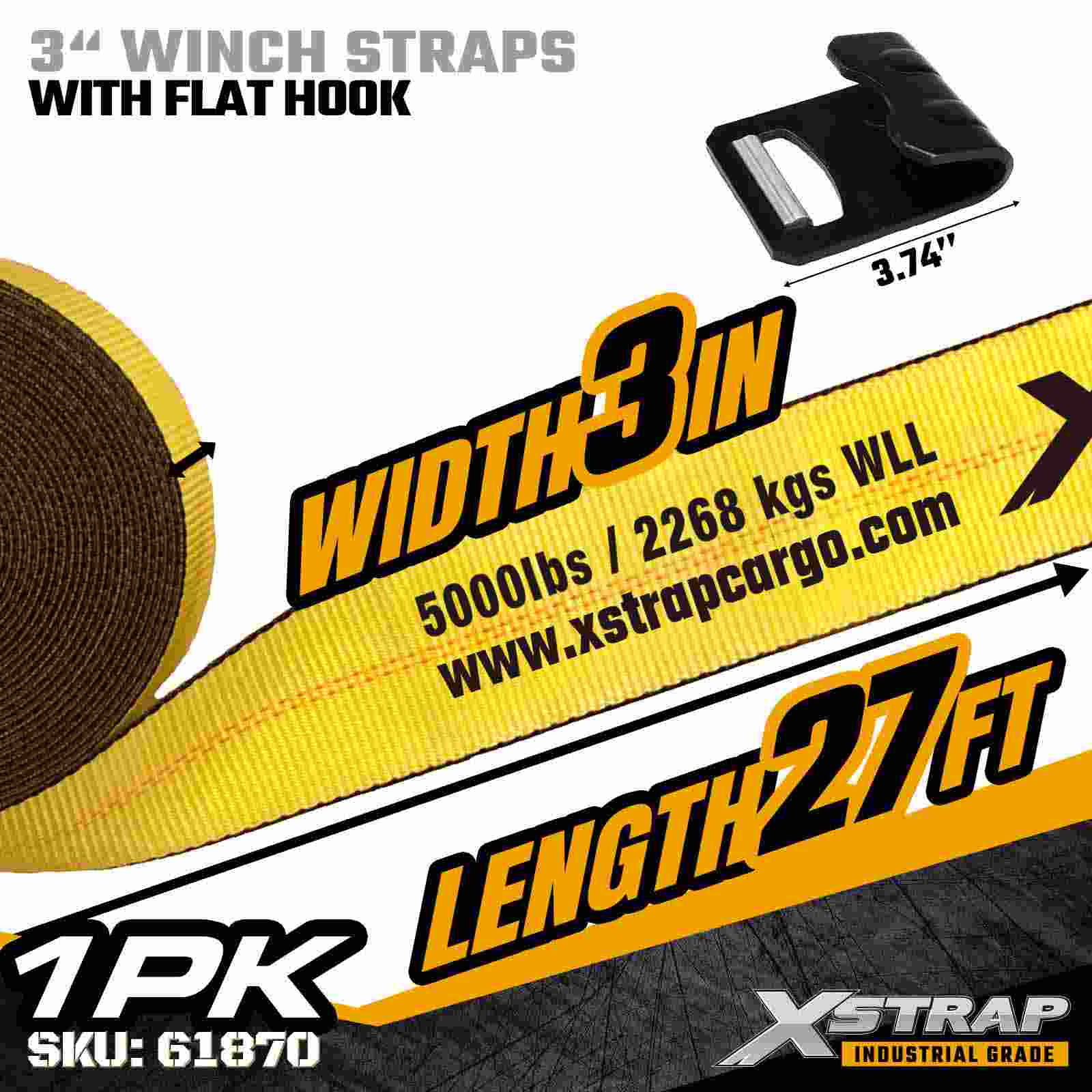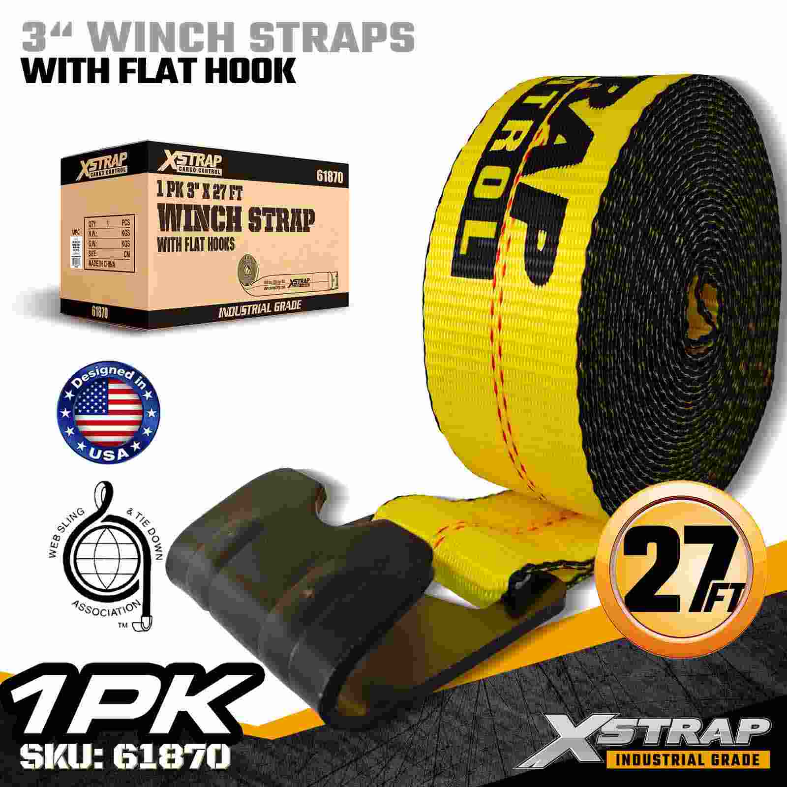 Xstrap 61870 3" × 27 ft Standart Vinç Kayışı, düz yataklı treylerler ve yüksek kapasiteli taşıma için tasarlanmış ağır hizmet tipi bir kargo emniyet kayışıdır. Güçlendirilmiş Düz Kanca ve ekstra geniş 3 inçlik polyester dokuma içeren bu 3 inçlik vinç kayışı, 5.000 lbs Çalışma Yükü Sınırı ve 15.000 lbs Kopma Mukavemeti sunar. Zorlu taşıma sırasında kereste, çelik, makine ve endüstriyel yükün emniyete alınması için idealdir. operasyonlar.