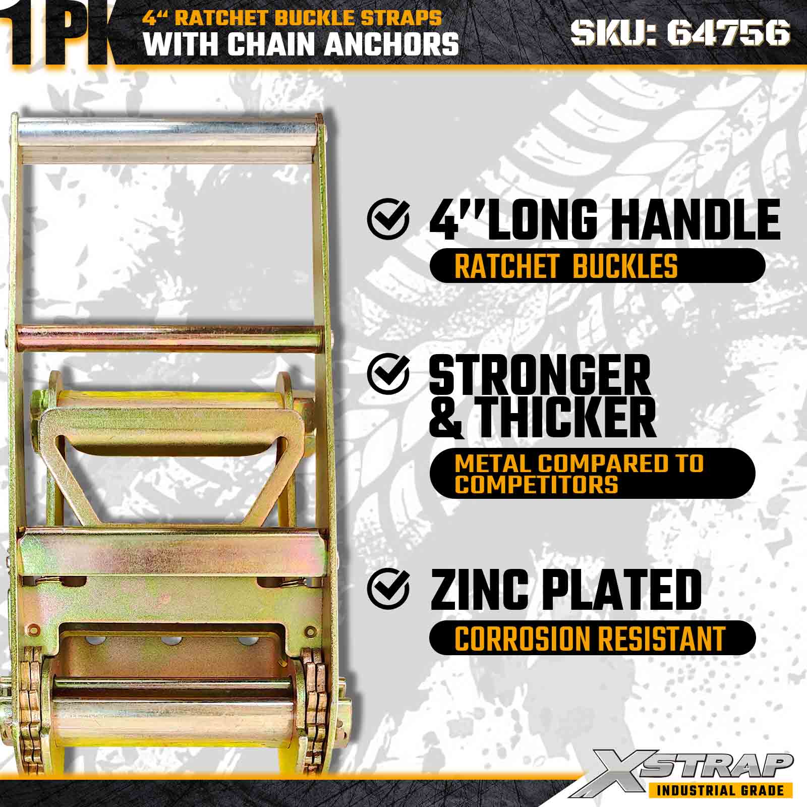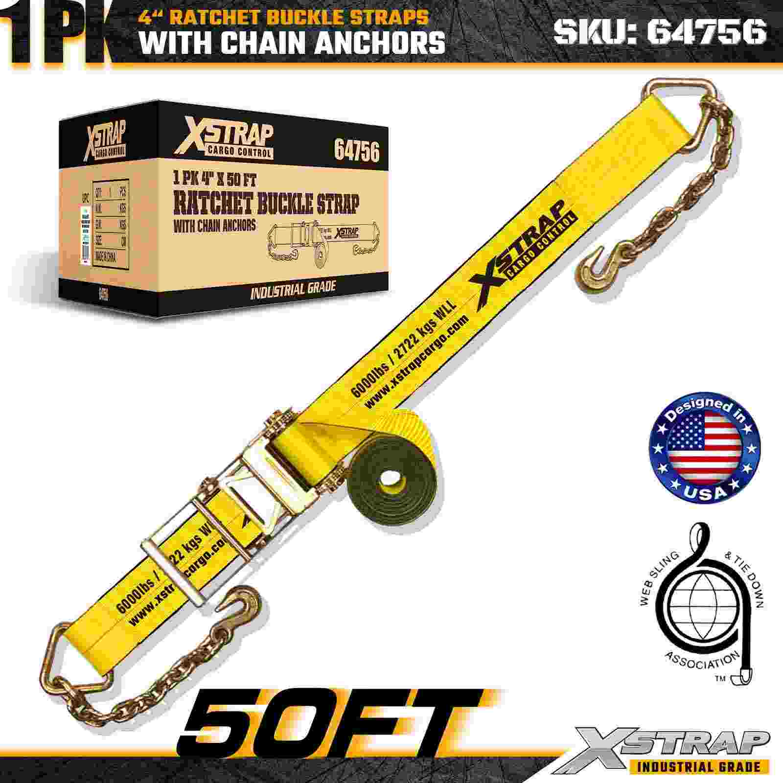 Xstrap 64756 4" × 50 ft Zincirli Ankrajlı Cırcırlı Tokalı Kayış Kırılma Mukavemeti 18.000 lbs (1 Paket)