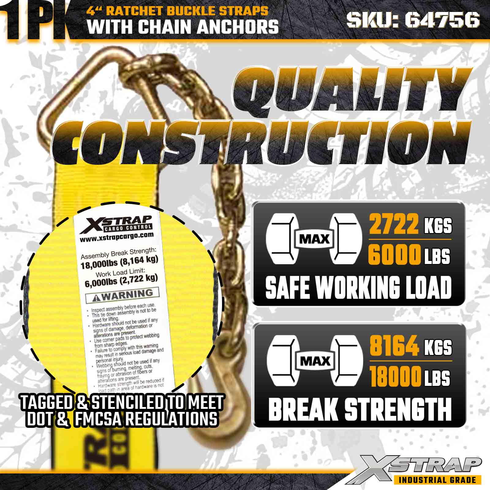 Xstrap 64756 4" × 50 ft Cırcırlı Toka Kayışı (1'li Paket), sağlam Zincir Ankrajları ve güçlendirilmiş mandal mekanizmasıyla zorlu kargo güvenliği için tasarlanmıştır. 6.000 lbs Çalışma Yükü Limiti ve 18.000 lbs Kopma Dayanımı ile bu ekstrauzun askı, maksimum erişim ve güvenilirlik gerektiren büyük boyutlu yükler, makine taşıma, çelik taşıma ve endüstriyel lojistik için idealdir.