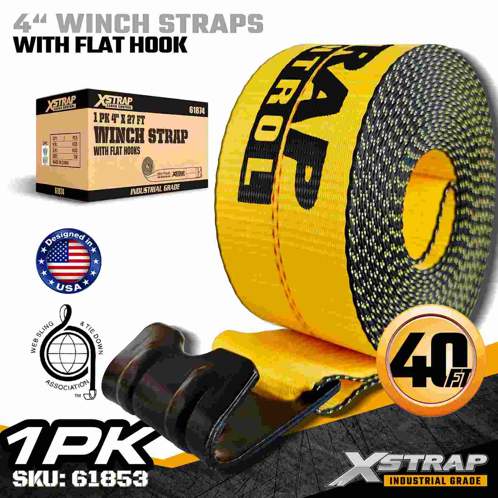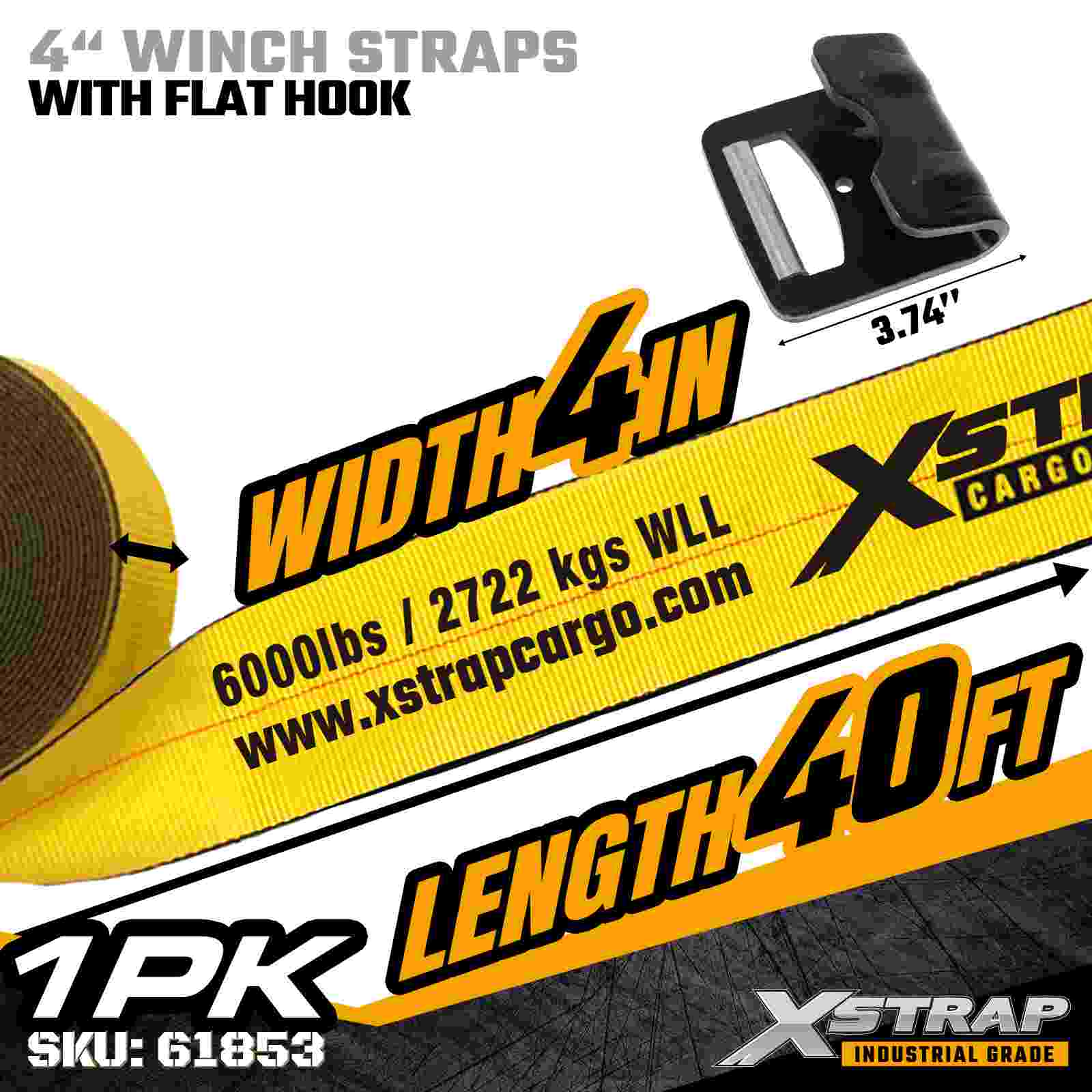 Xstrap 61853 4" × 40 ft Standart Vinç Kayışı, düz yataklı treylerler ve büyük boyutlu endüstriyel yük için tasarlanmış yüksek kapasiteli, genişletilmiş erişimli bir kargo emniyet kayışıdır. Güçlendirilmiş Düz Kanca ve ekstra geniş 4 inçlik polyester dokumaya sahip bu 4 inçlik vinç kayışı, 6.000 lbs Çalışma Yükü Sınırı ve 18.000 lbs Kopma Mukavemeti sunar. Ekstra uzun 40 ft uzunluk, geniş, Maksimum kapsama alanı ve stabilite gerektiren uzun veya düzensiz şekilli yükler.