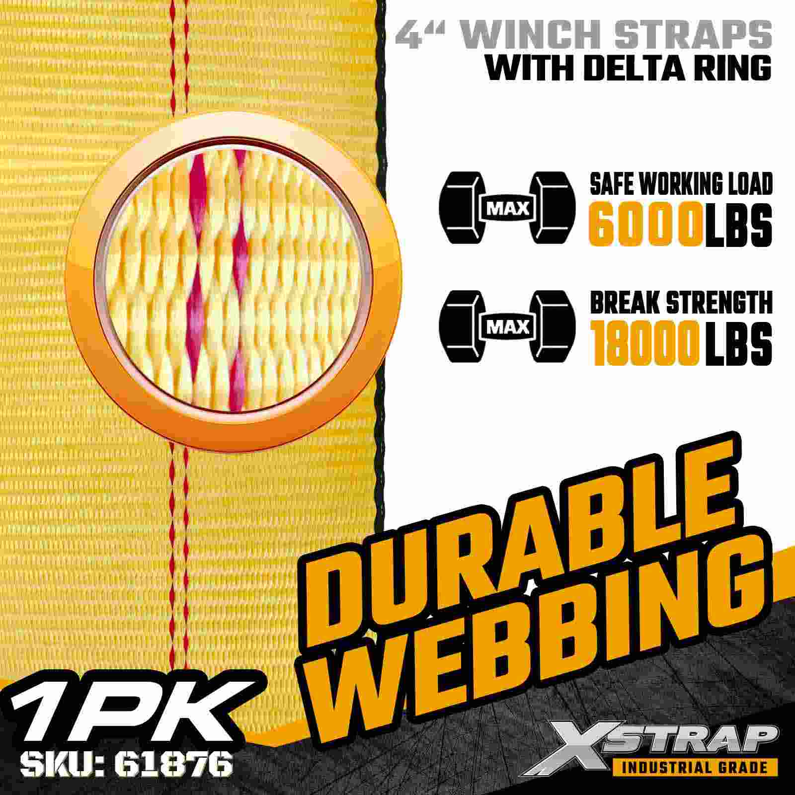 Xstrap 61876 4" × 27 ft Standart Vinç Kayışı, düz yataklı treylerler ve endüstriyel taşımacılık için tasarlanmış birinci sınıf bir ağır hizmet kargo emniyet kayışıdır. Güçlendirilmiş Delta Halkası ve ultra geniş 4 inç polyester dokuma içeren bu 4 inçlik vinç kayışı, 6.000 lbs Çalışma Yükü Limiti ve 18.000 lbs Kopma Mukavemeti sunar. Delta Halkası tasarımı, çok yönlü yük bağlantısı sağlayarak karmaşık veya düzensiz yüklerin emniyete alınması için idealdir. geliştirilmiş stabilite ve esnek sabitleme.