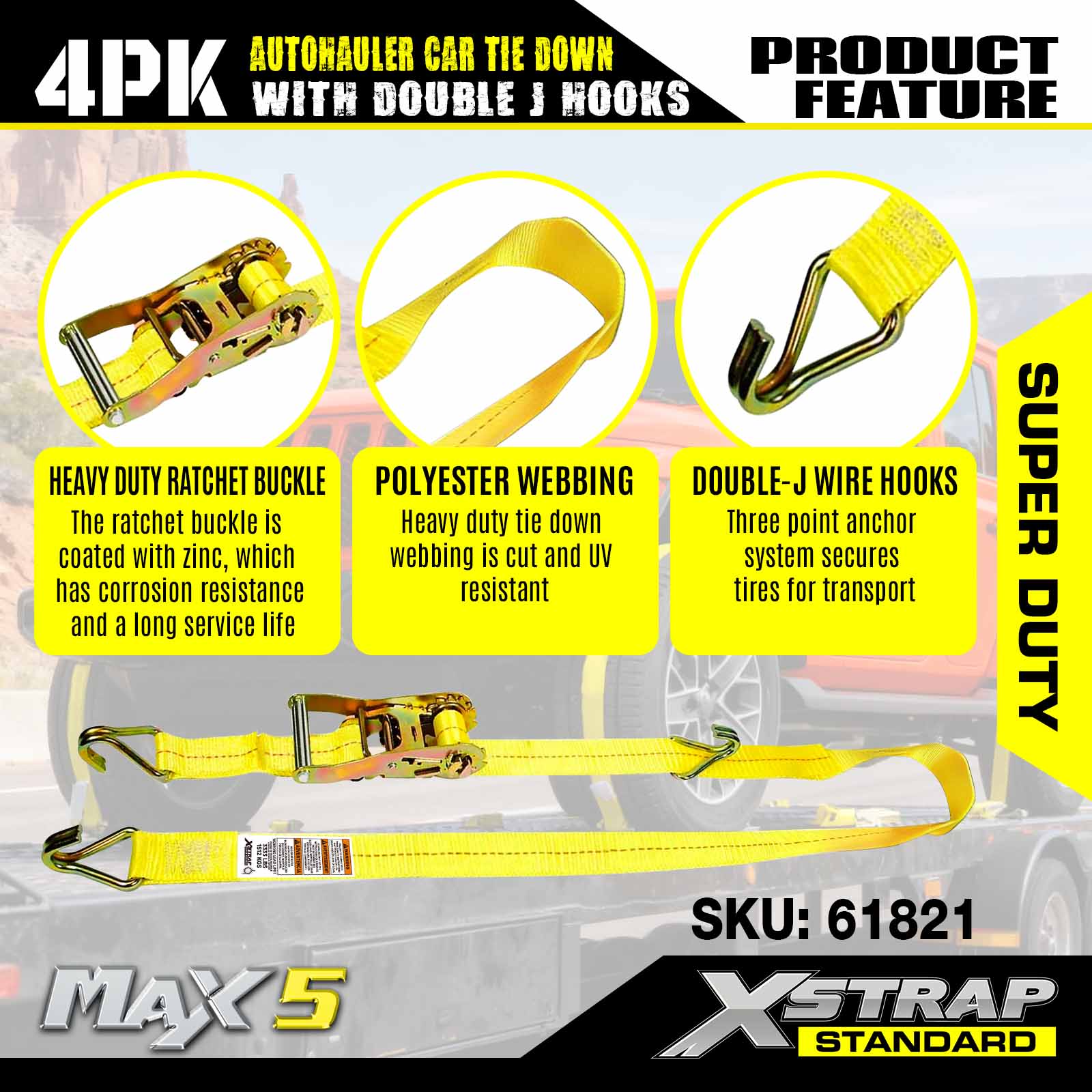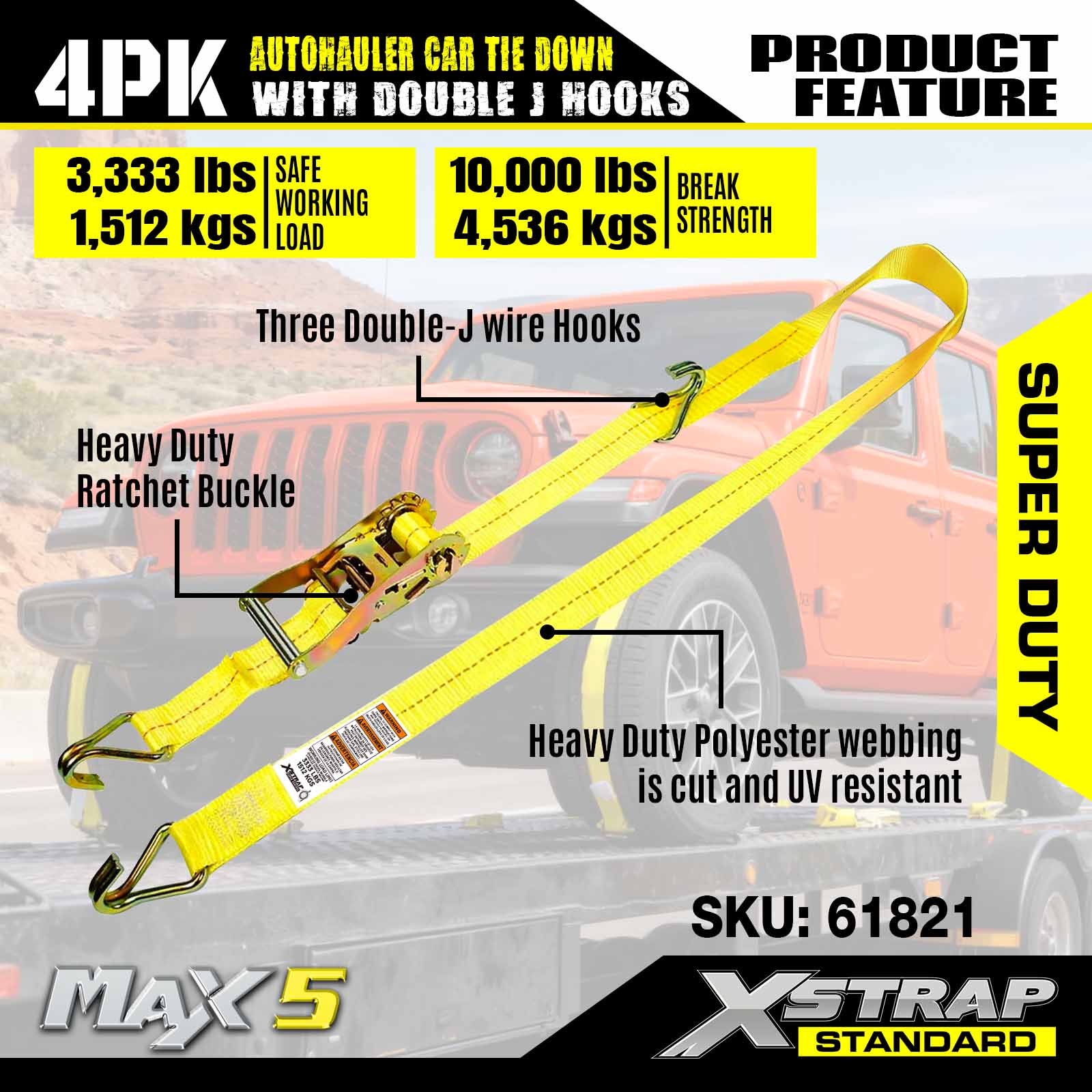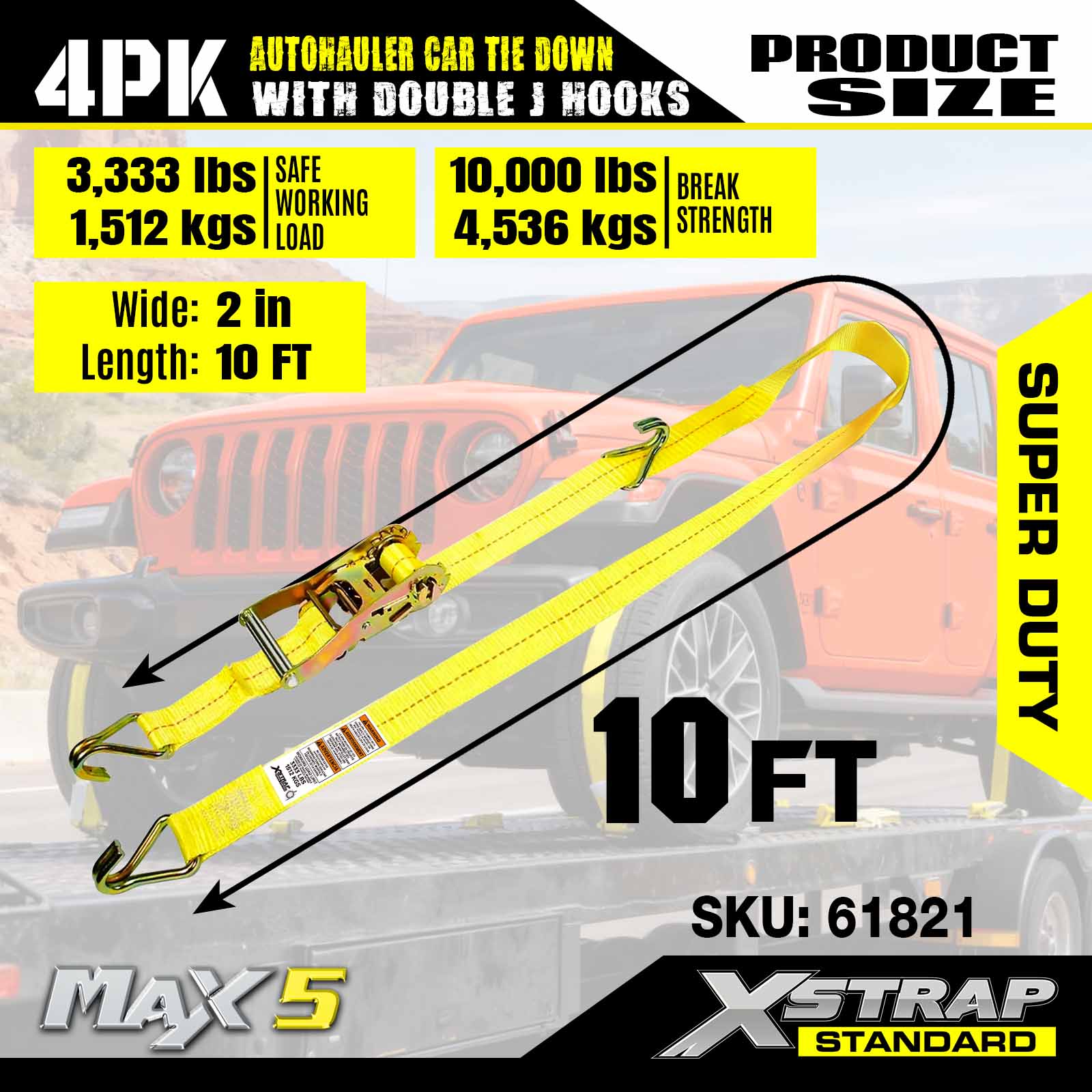 - Süper Hizmet Performansı: 3.333 LBS güvenli çalışma yükü ve 10.000 LBS kırılma mukavemeti için derecelendirilen bu ürün, ağır araçların ve zorlu nakliye senaryolarının üstesinden gelmek üzere üretilmiştir.