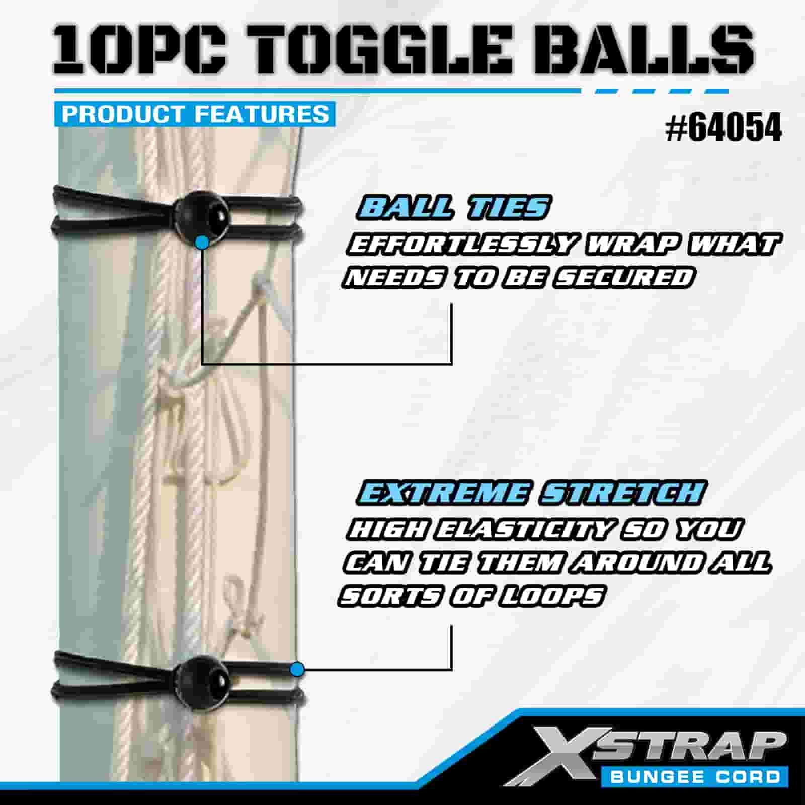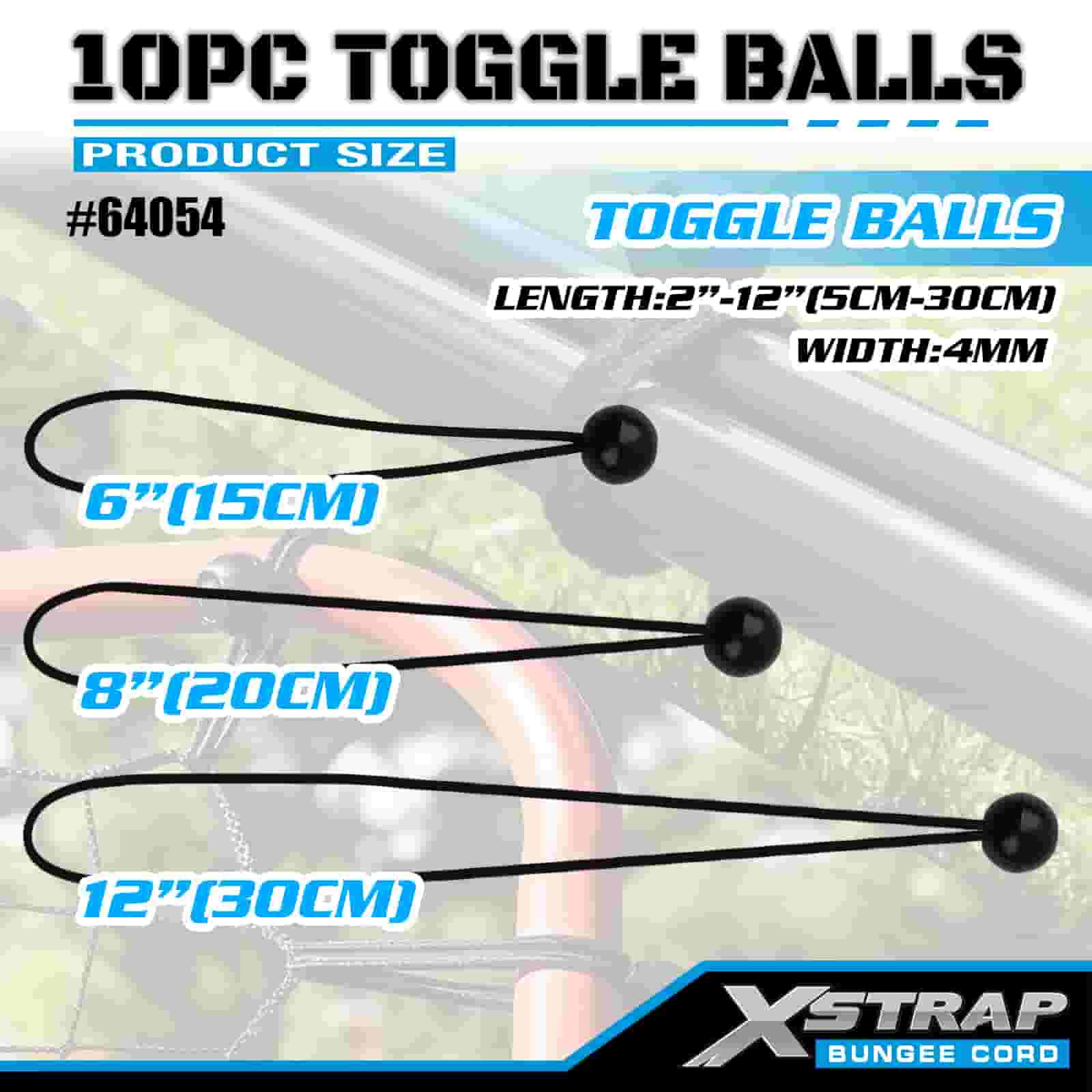 Xstrap 10PK Mafsallı Toplar 4 mm x 2”-12”, Kargo Kontrolü için farklı boyutlarda bungee topları.