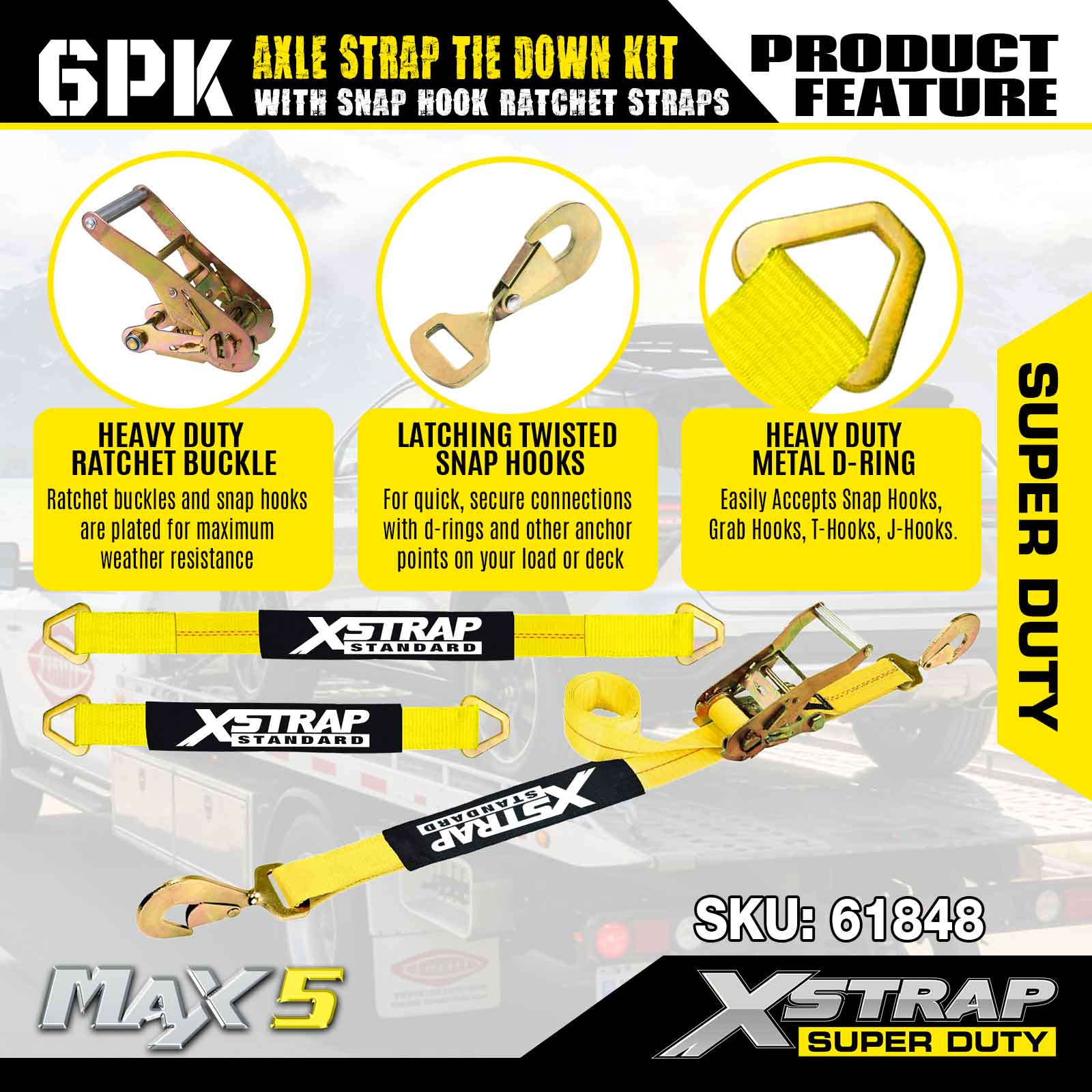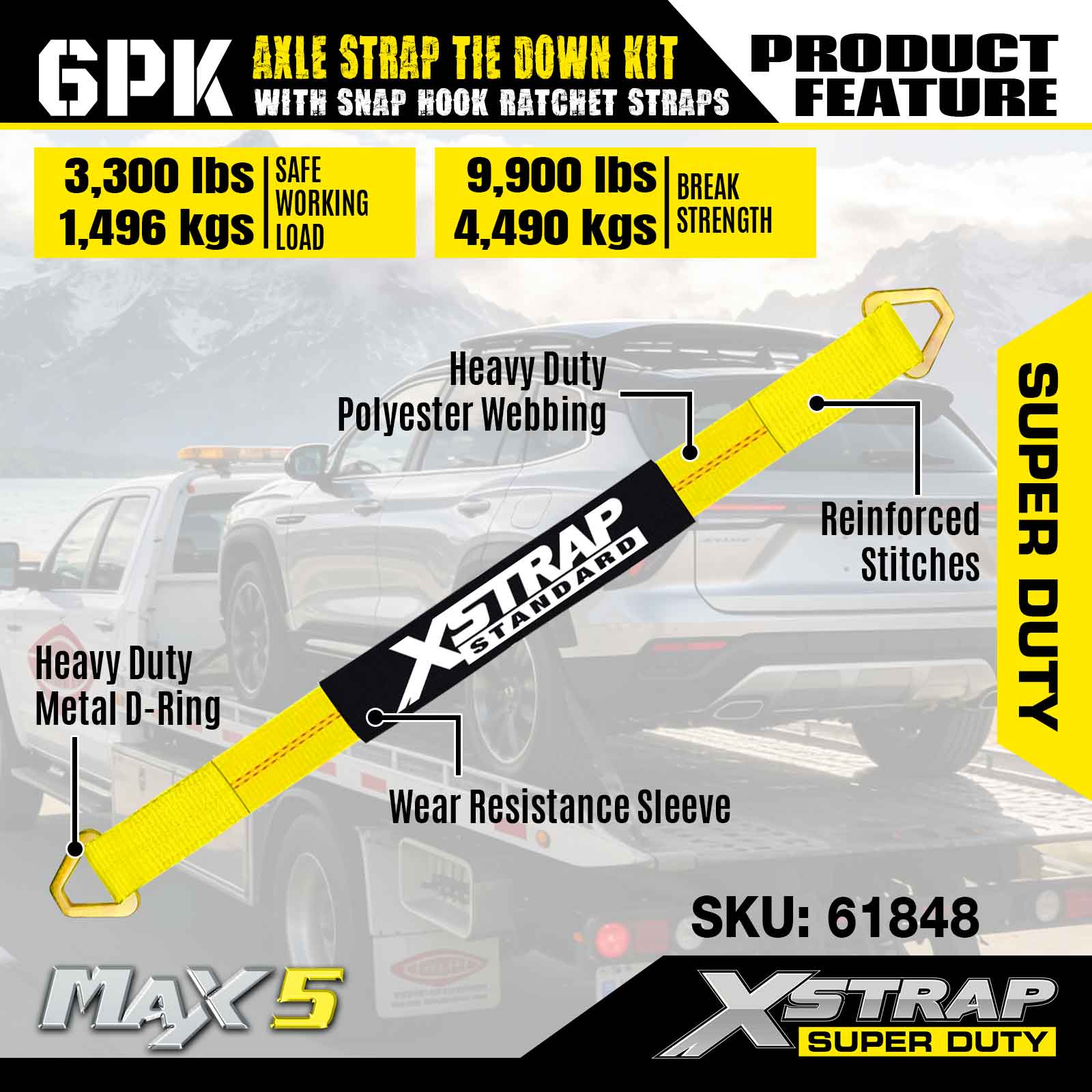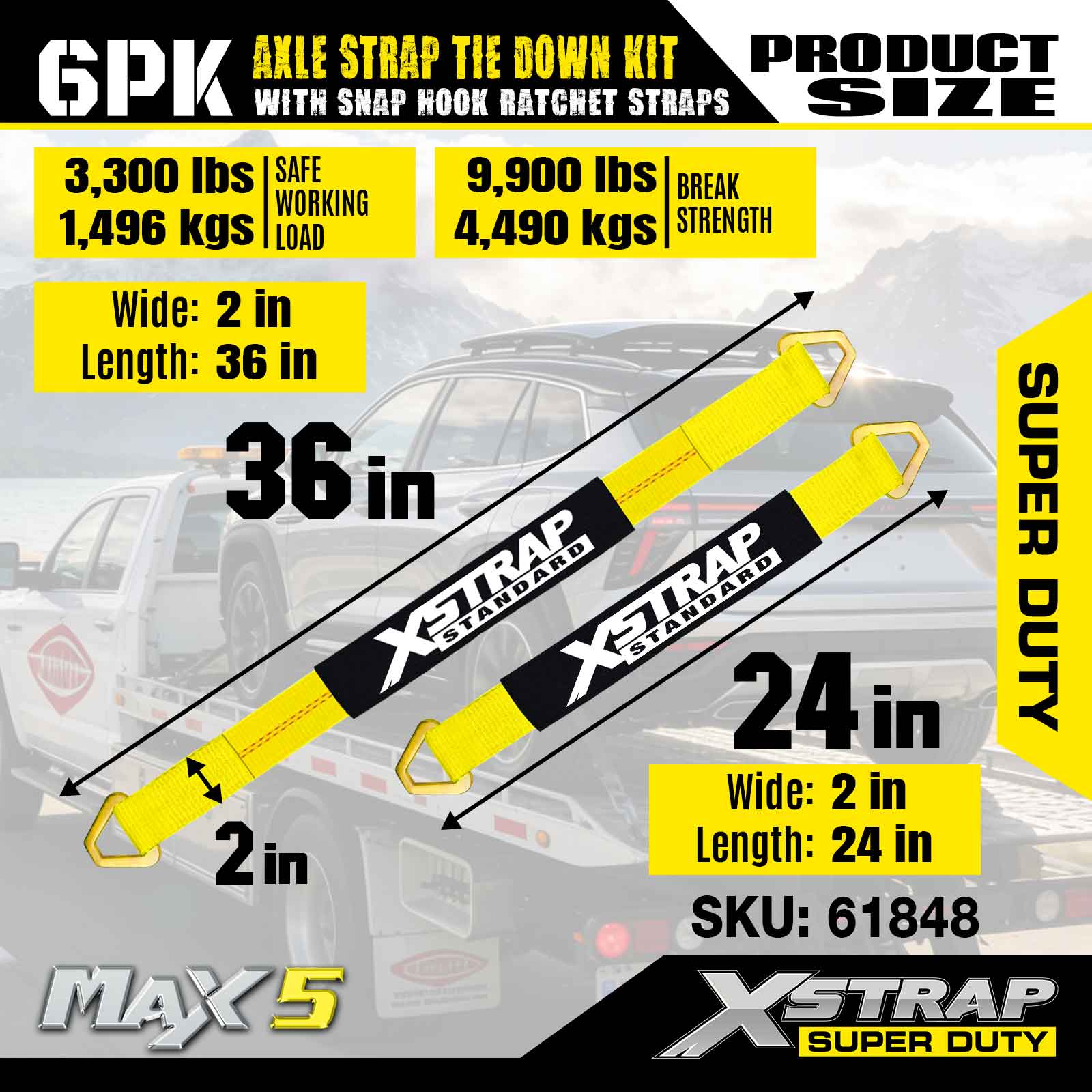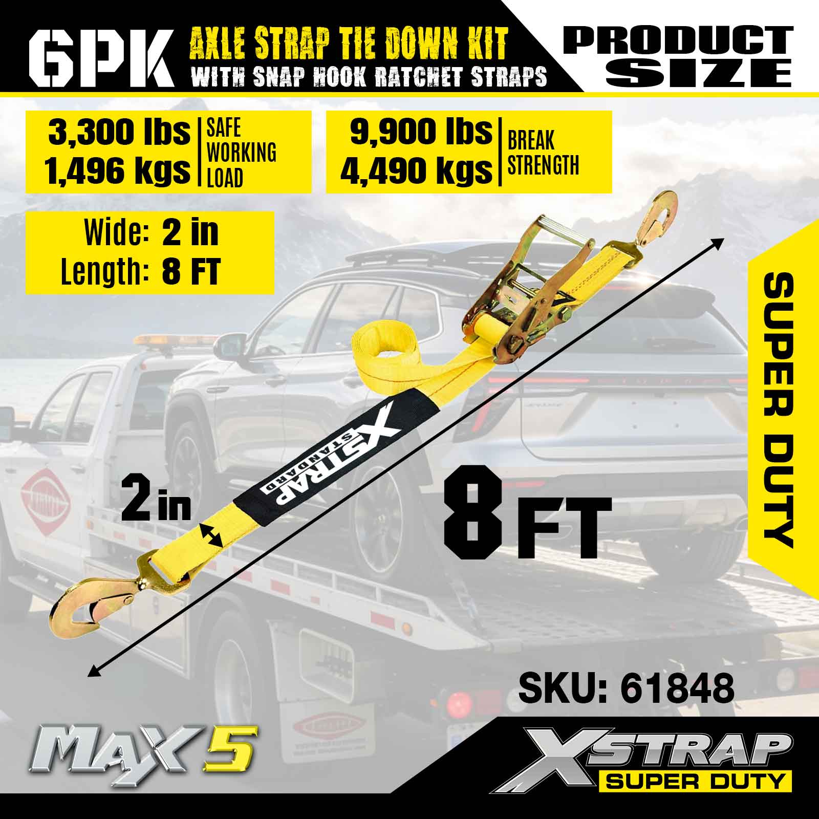 Xstrap 6PK Aks Kayışı Bağlama Kiti (Geçmeli Kanca Cırcırlı Kayışlarla) – Süper Hizmet. 3,300 LBS (1,496 KG) güvenli çalışma yüküne ve 9,900 LBS (4,490 KG) kopma mukavemetine sahiptir.