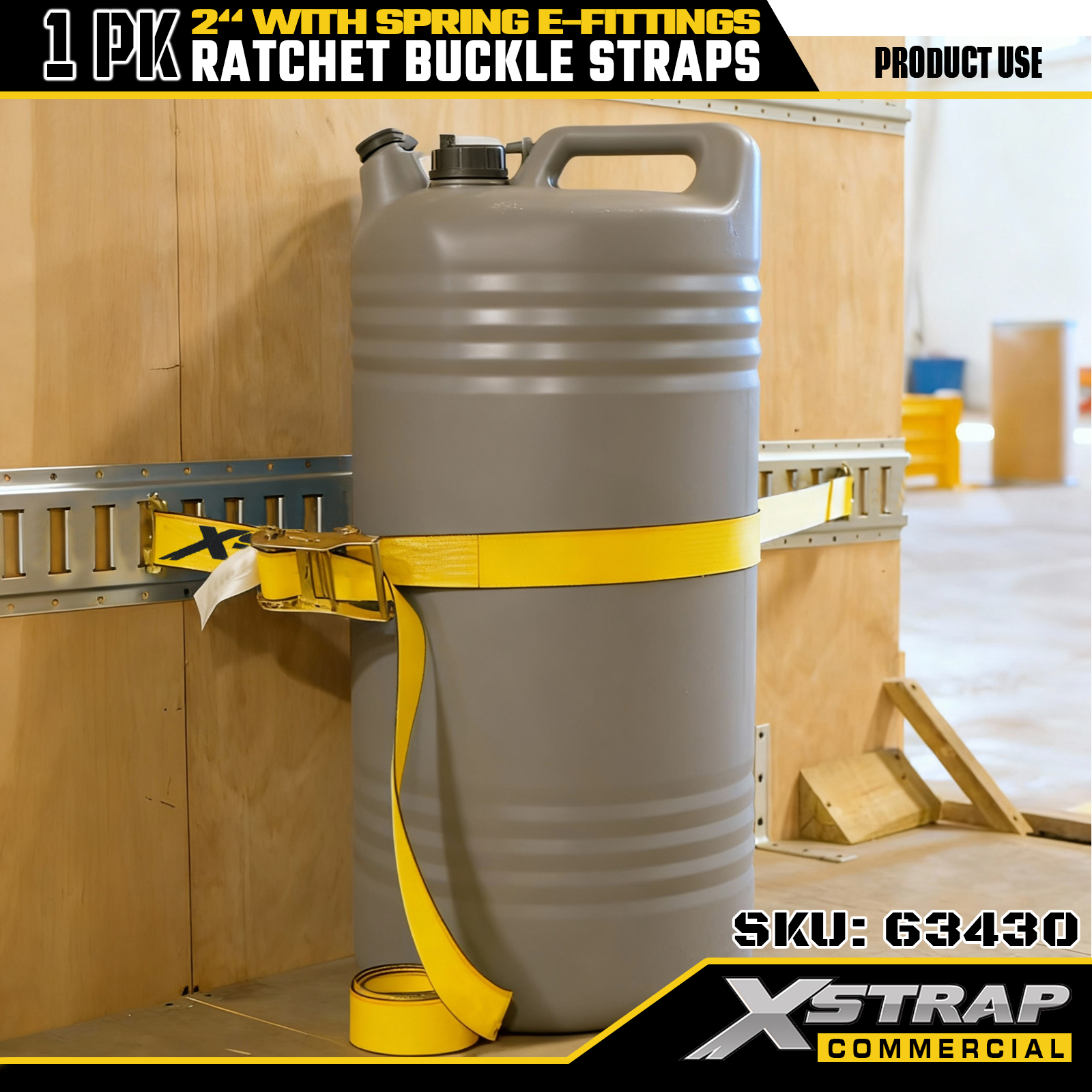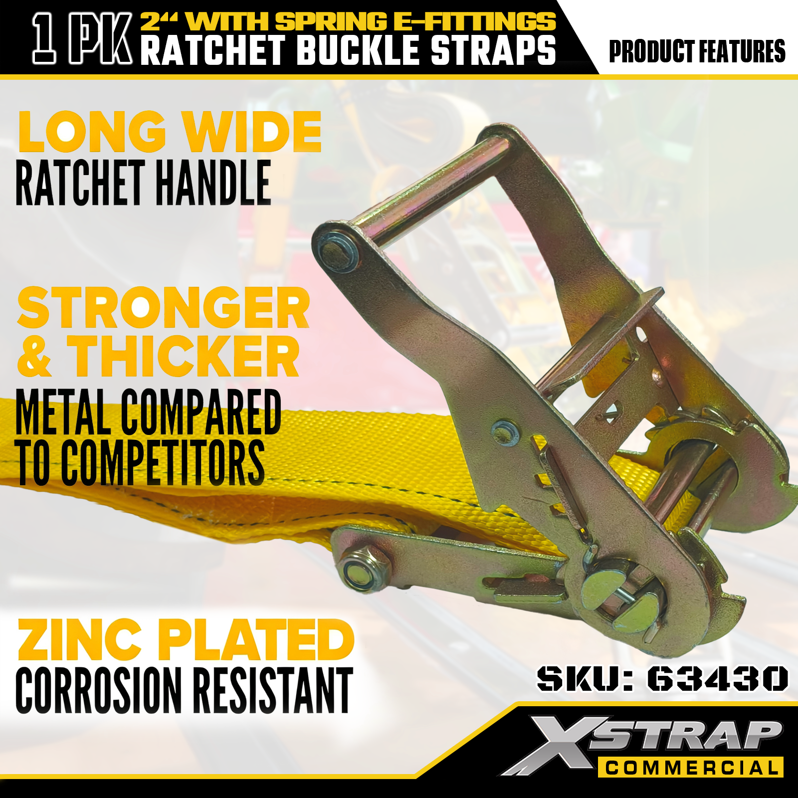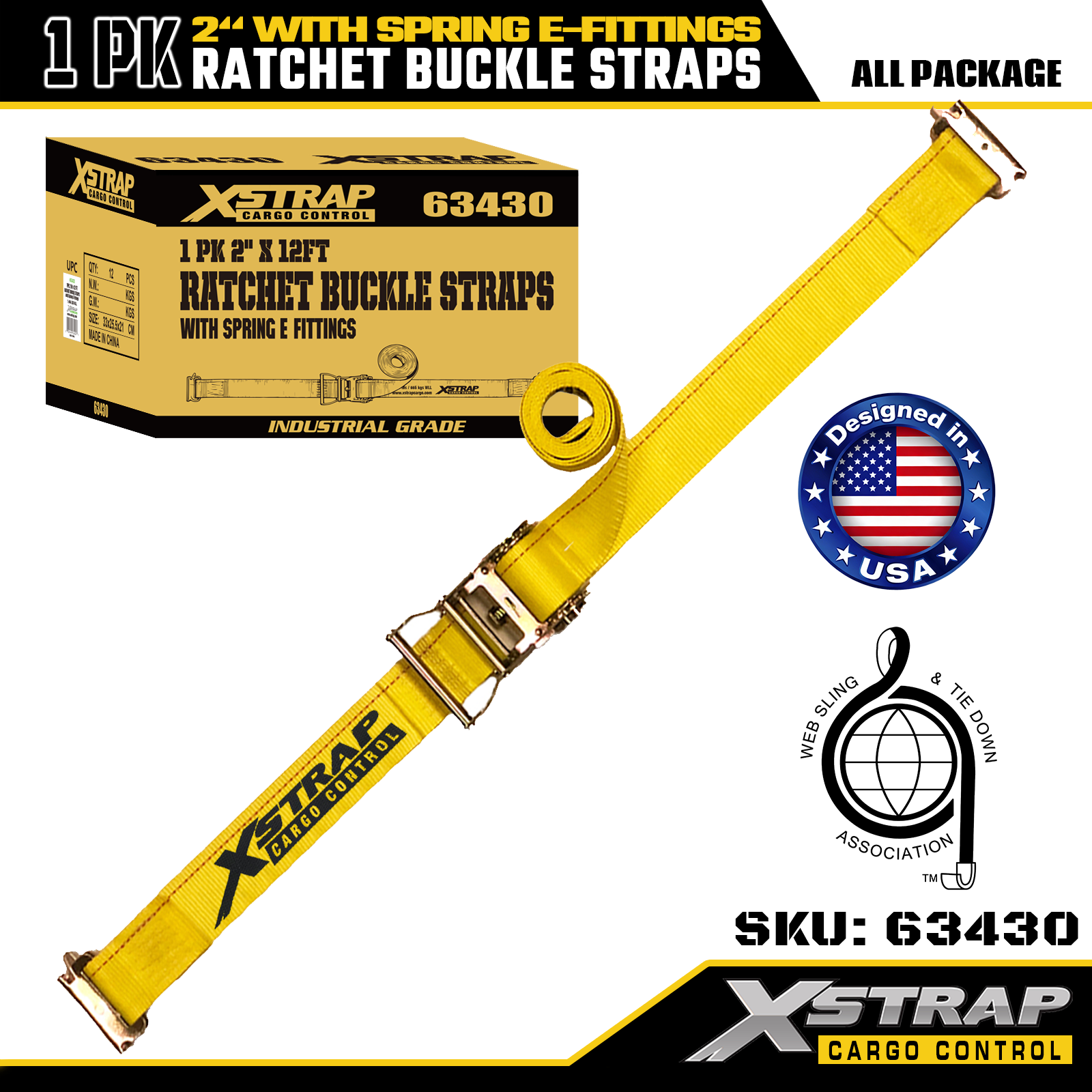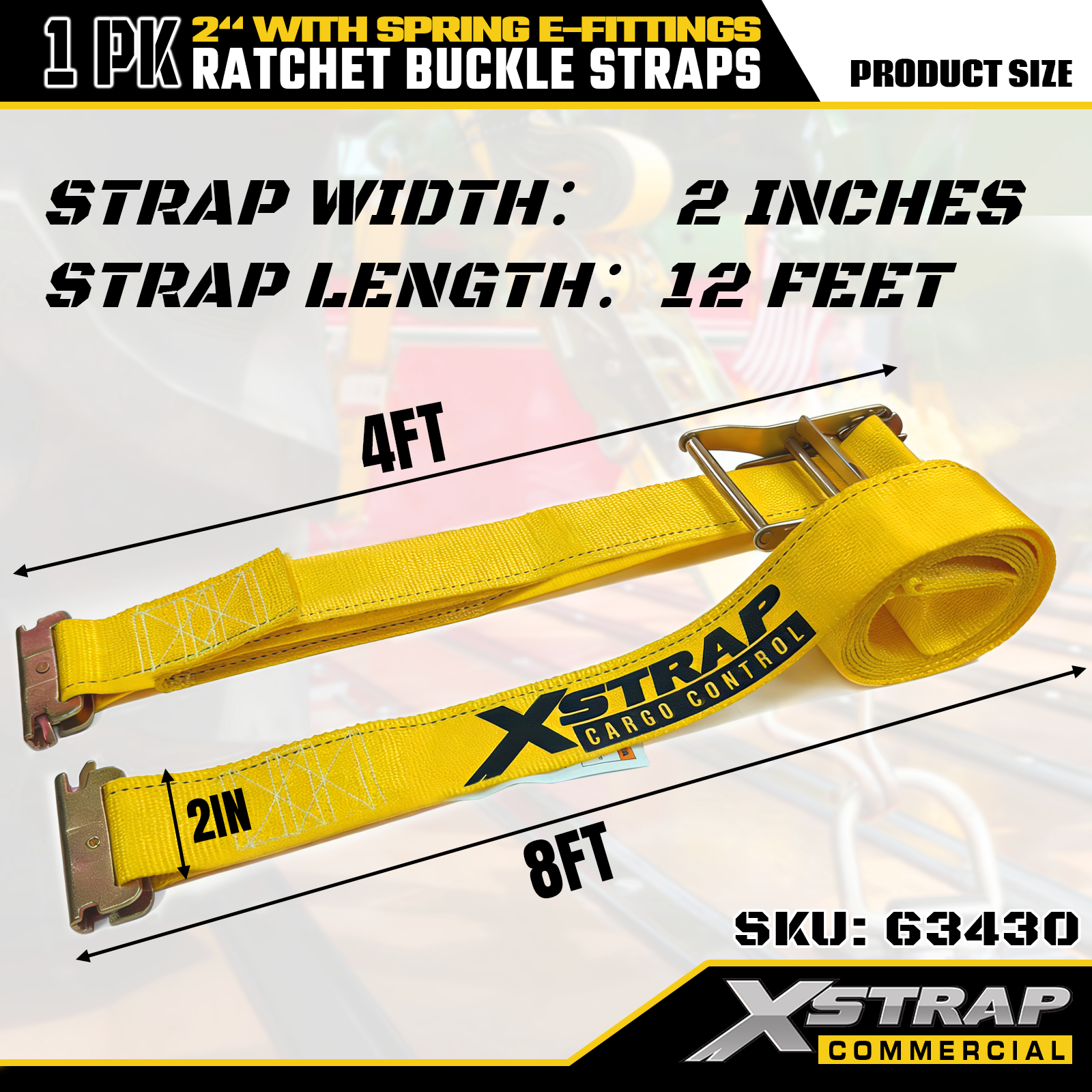 Xstrap 1 Paket Polyester Cırcırlı Bağlama Kayışları, Yaylı E Bağlantı Parçaları, 2" x 12' Ağır Hizmet Kargo Sabitleme Kayışları, Kamyon, Biçme Makinesi, ATV'ler için 4401 lbs (1467 lbs) Kapasite