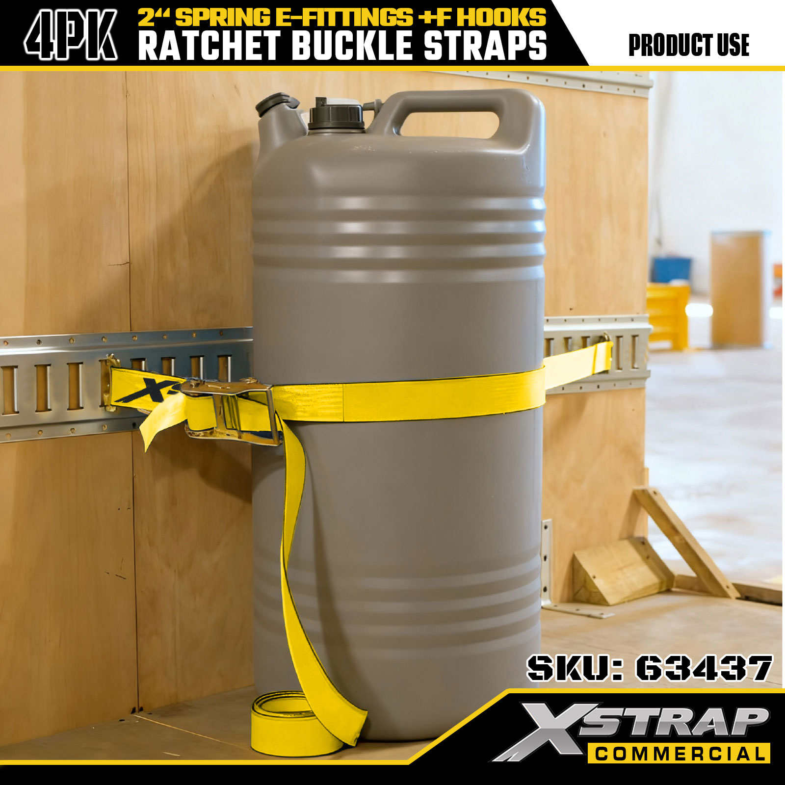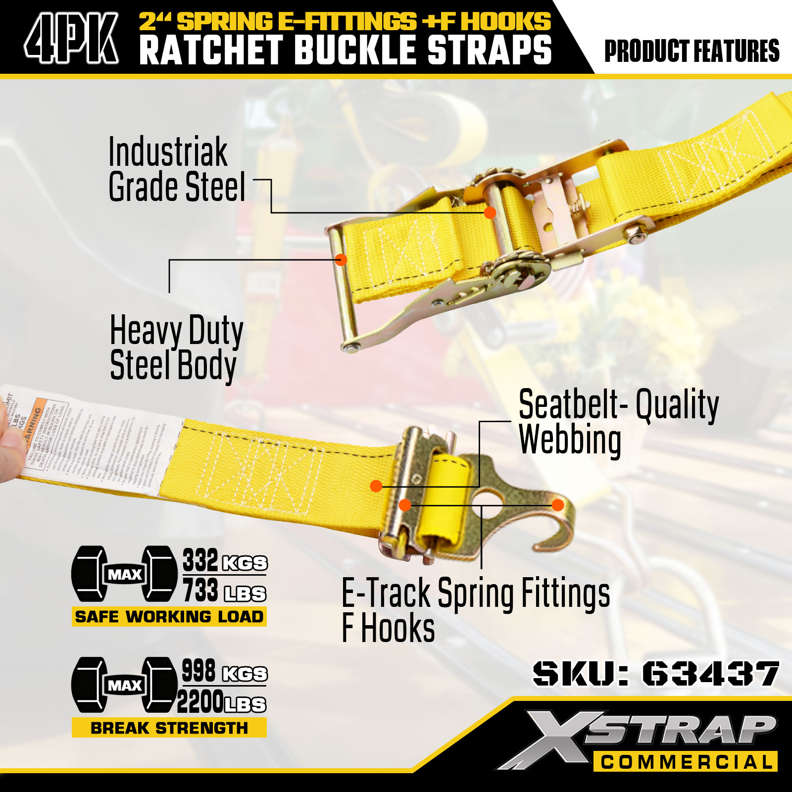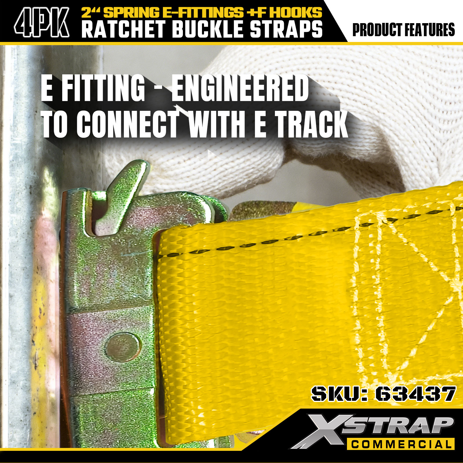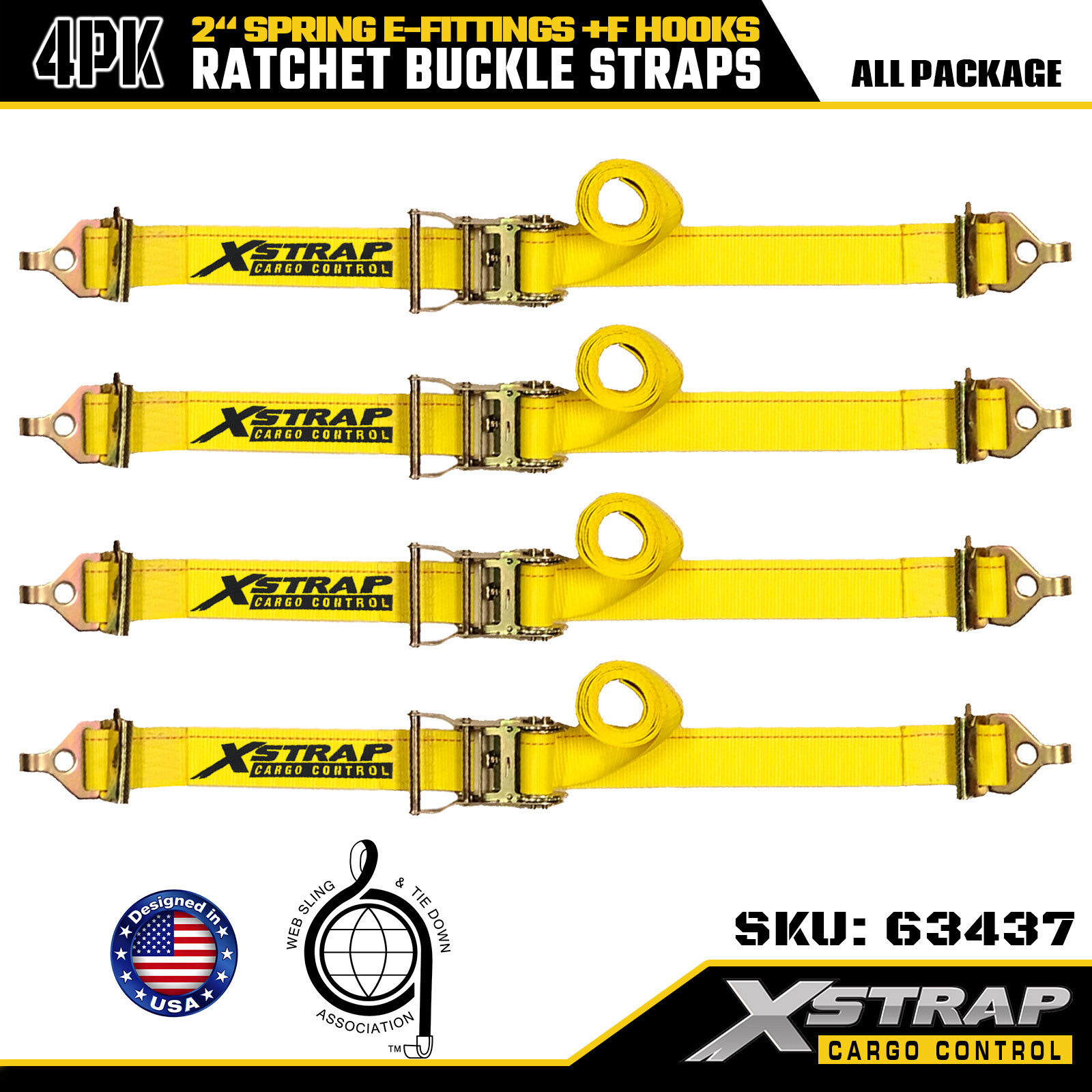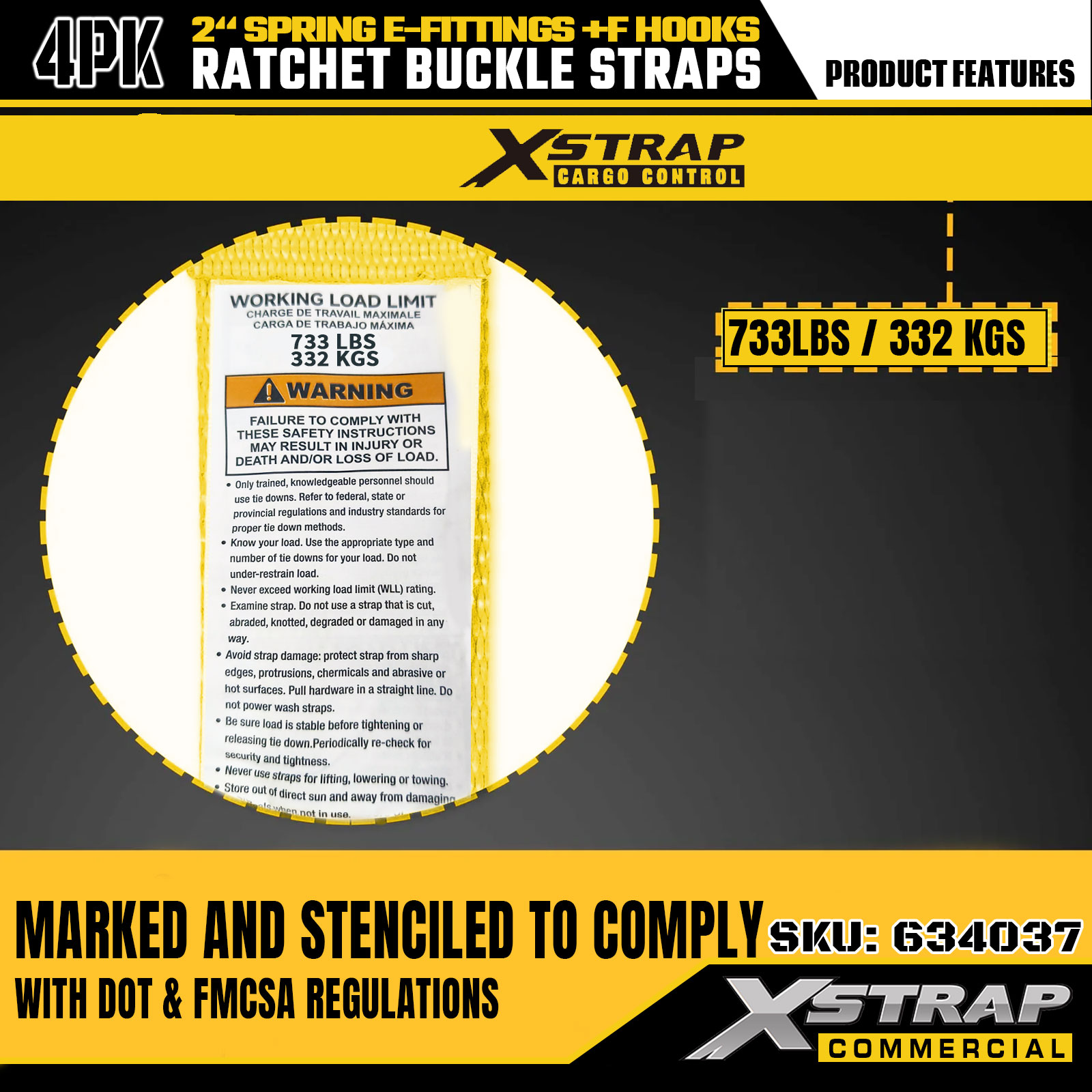 Xstrap 4 Paket Ağır Hizmet Cırcırlı Bağlama Kayışları, 2" x 12' Yaylı E Bağlantı Parçaları ve F Kancaları ile Yüksek Mukavemetli Polyester, Römorklar, Kamyonlar, Vanlar ve Motosikletler için 733 lbs Ağır Hizmet Kargo Bağlamaları