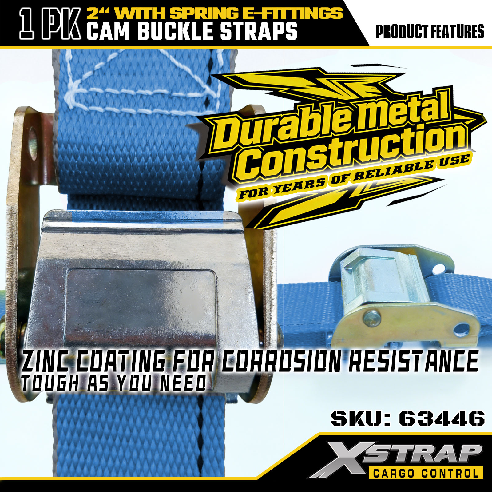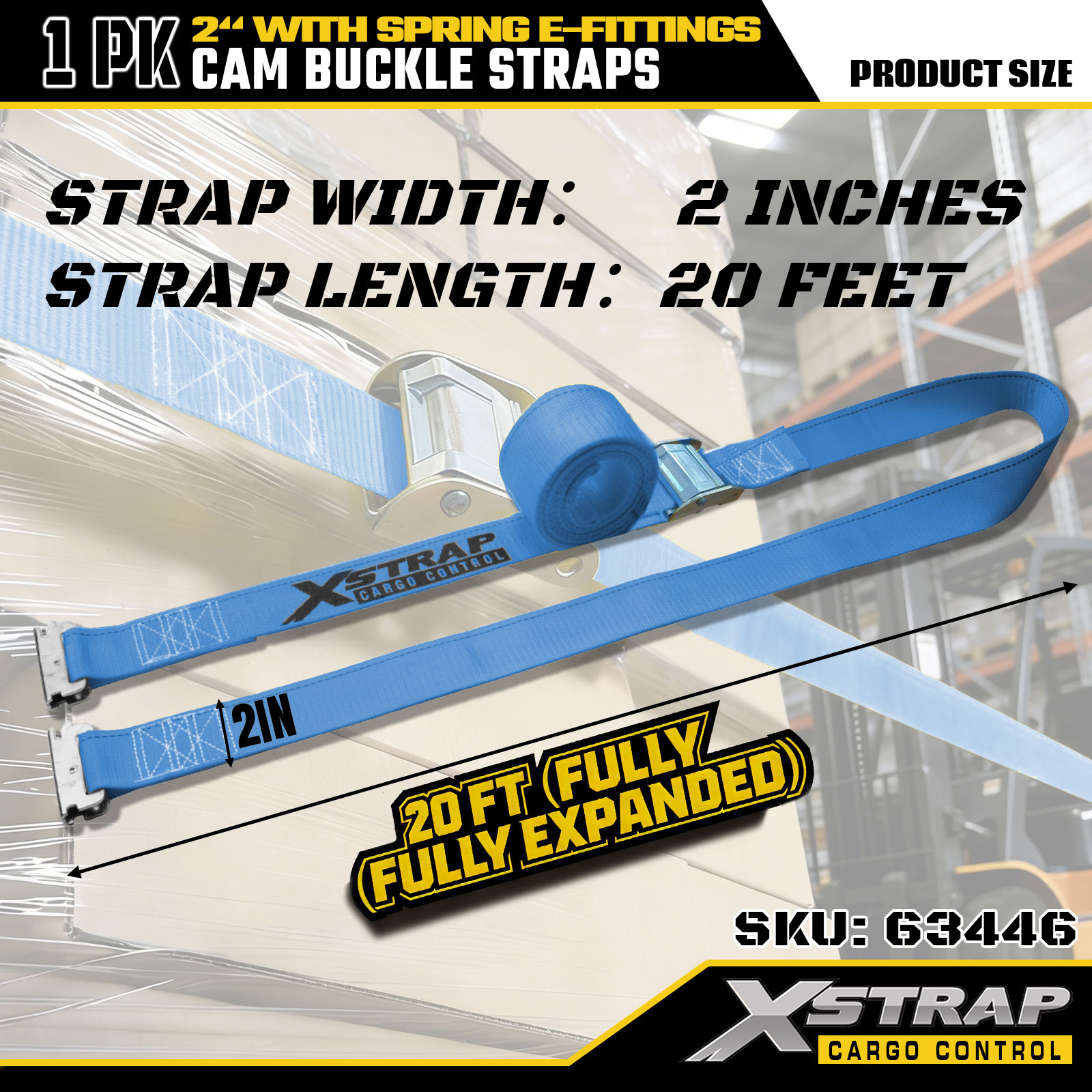 Xstrap 63446 Ağır Hizmet Cırcırlı Kayış 2" x 20' (1PK) - Yaylı E Bağlantı Parçaları ve F Kancalı Mavi Polyester, Kargo Kontrolü, Taşıma ve Taşıma için 733 lbs SWL ve 332 lbs Kırılma Mukavemeti