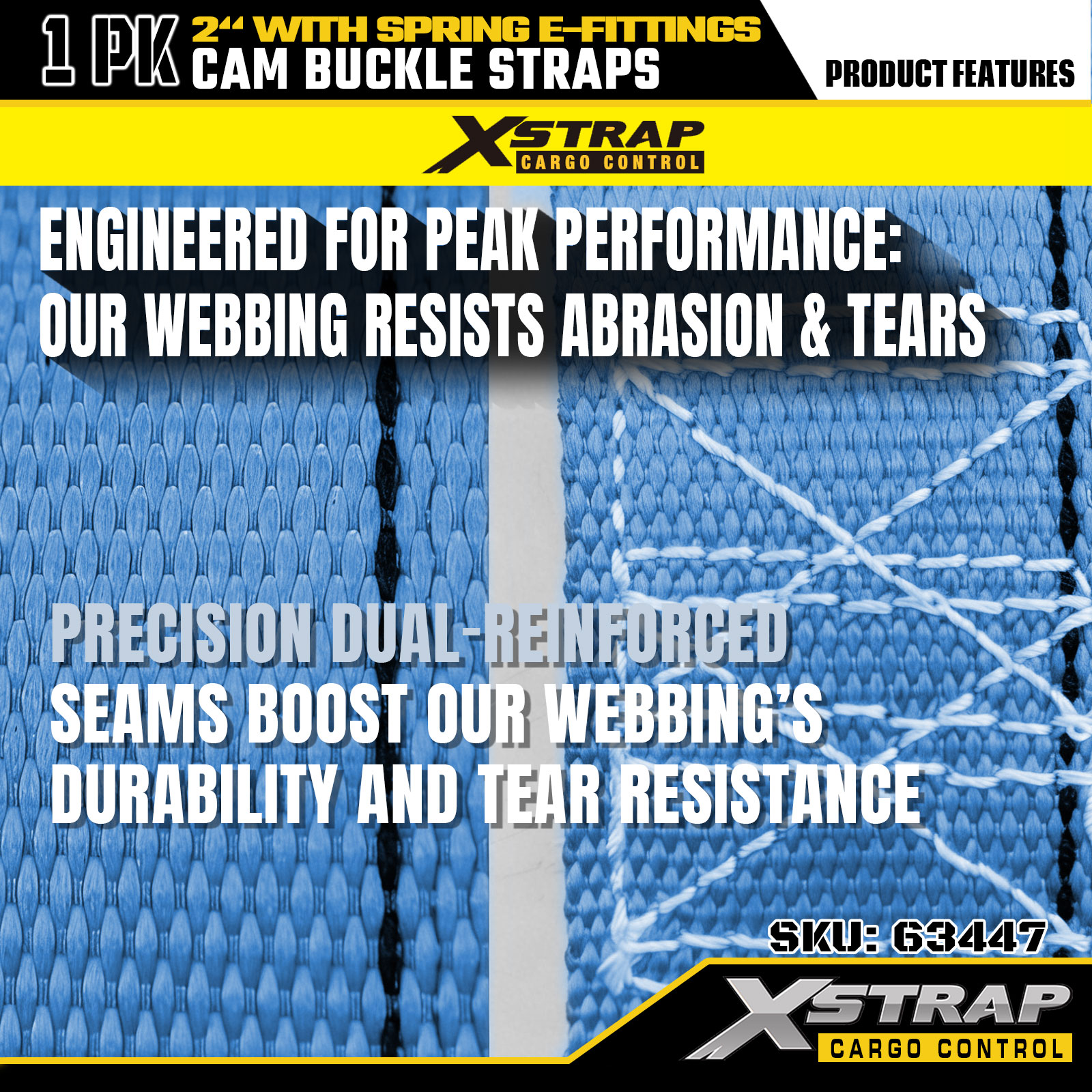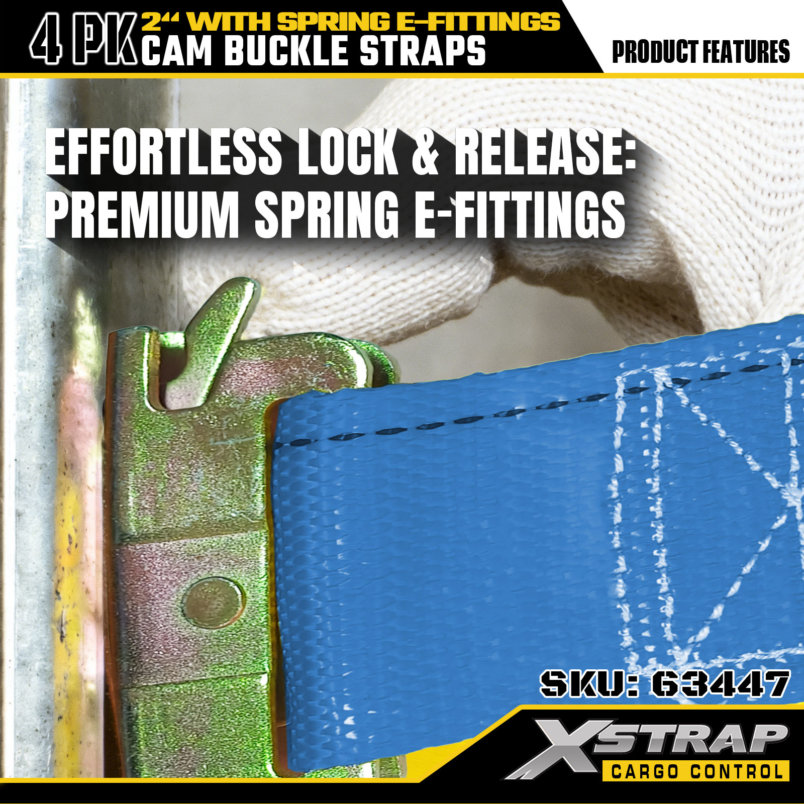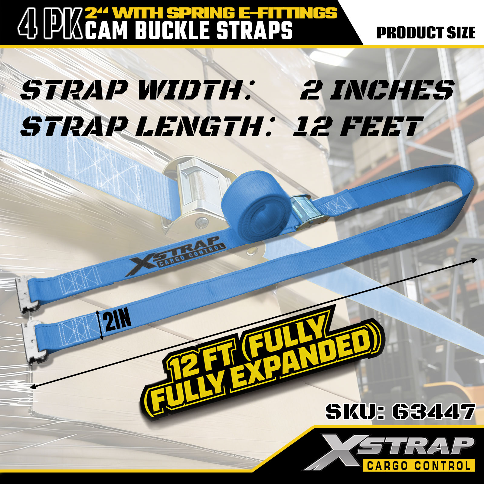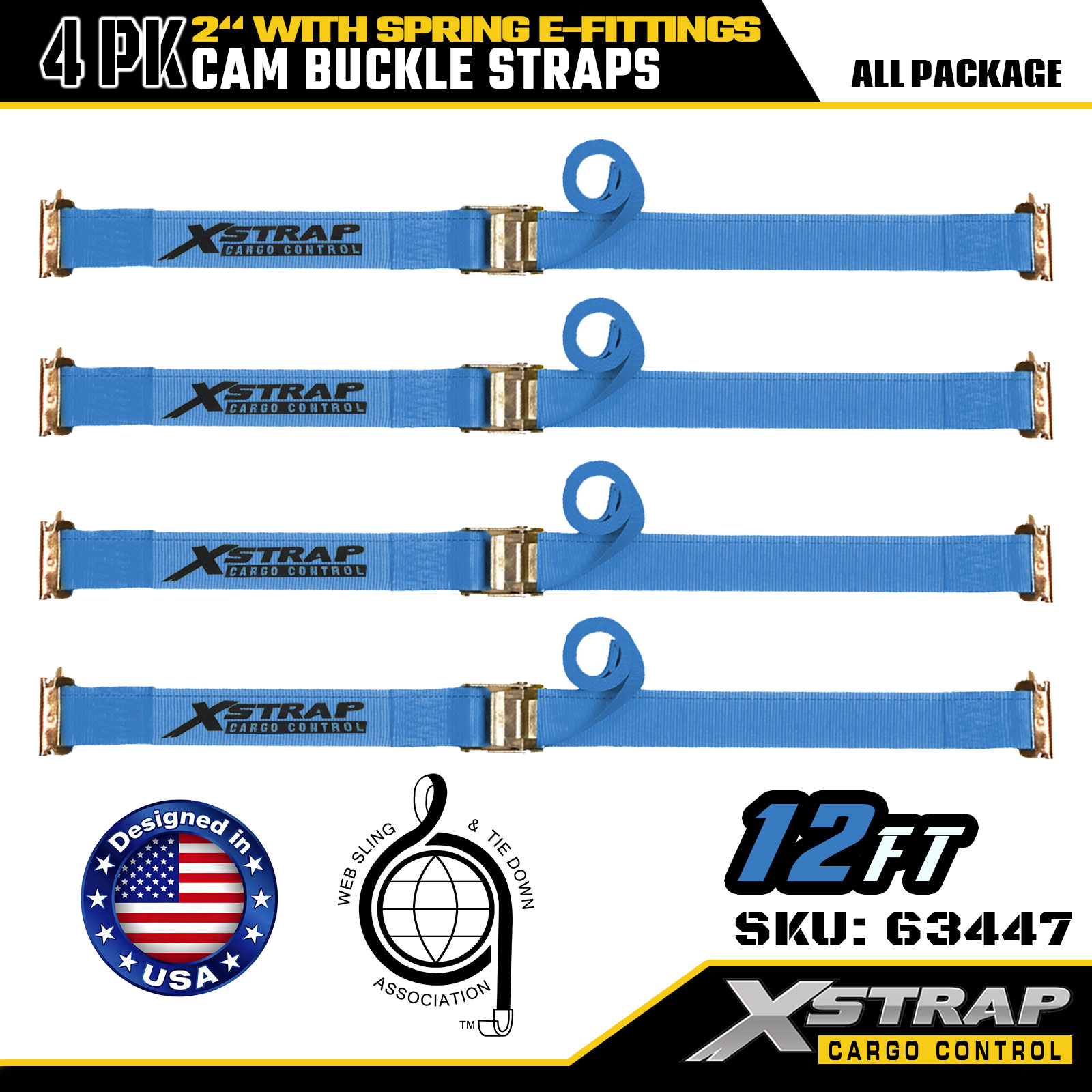 Xstrap 63447 4 Paket 2" x 12' Mavi Cırcırlı Kayışlar, Yaylı E Bağlantı Parçaları ve F Kancalar, Kargo Kontrolü, Taşıma ve Taşıma için 733 lbs SWL ve 332 lbs Kırılma Mukavemeti