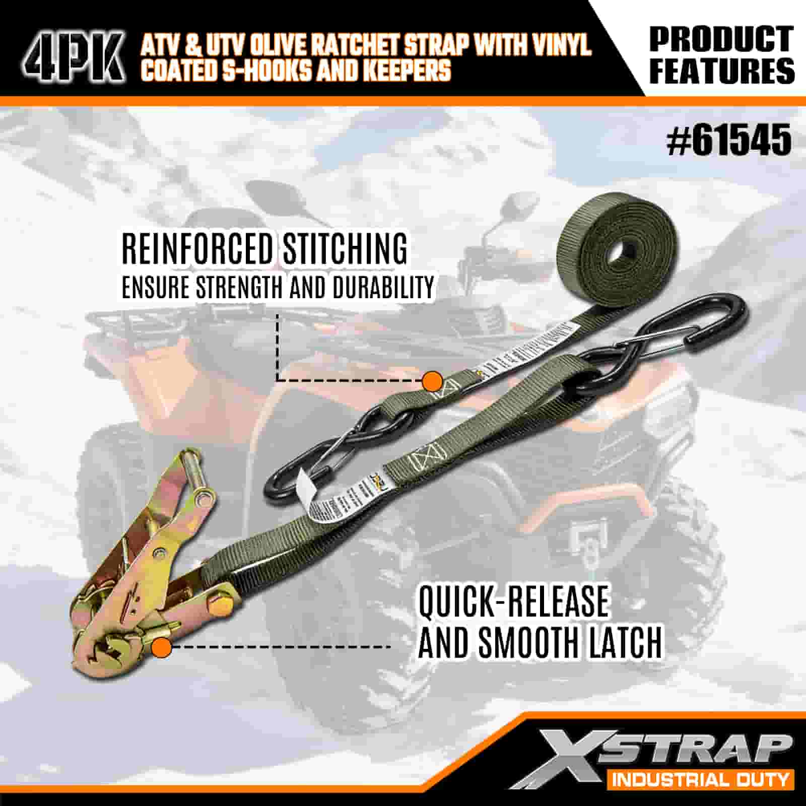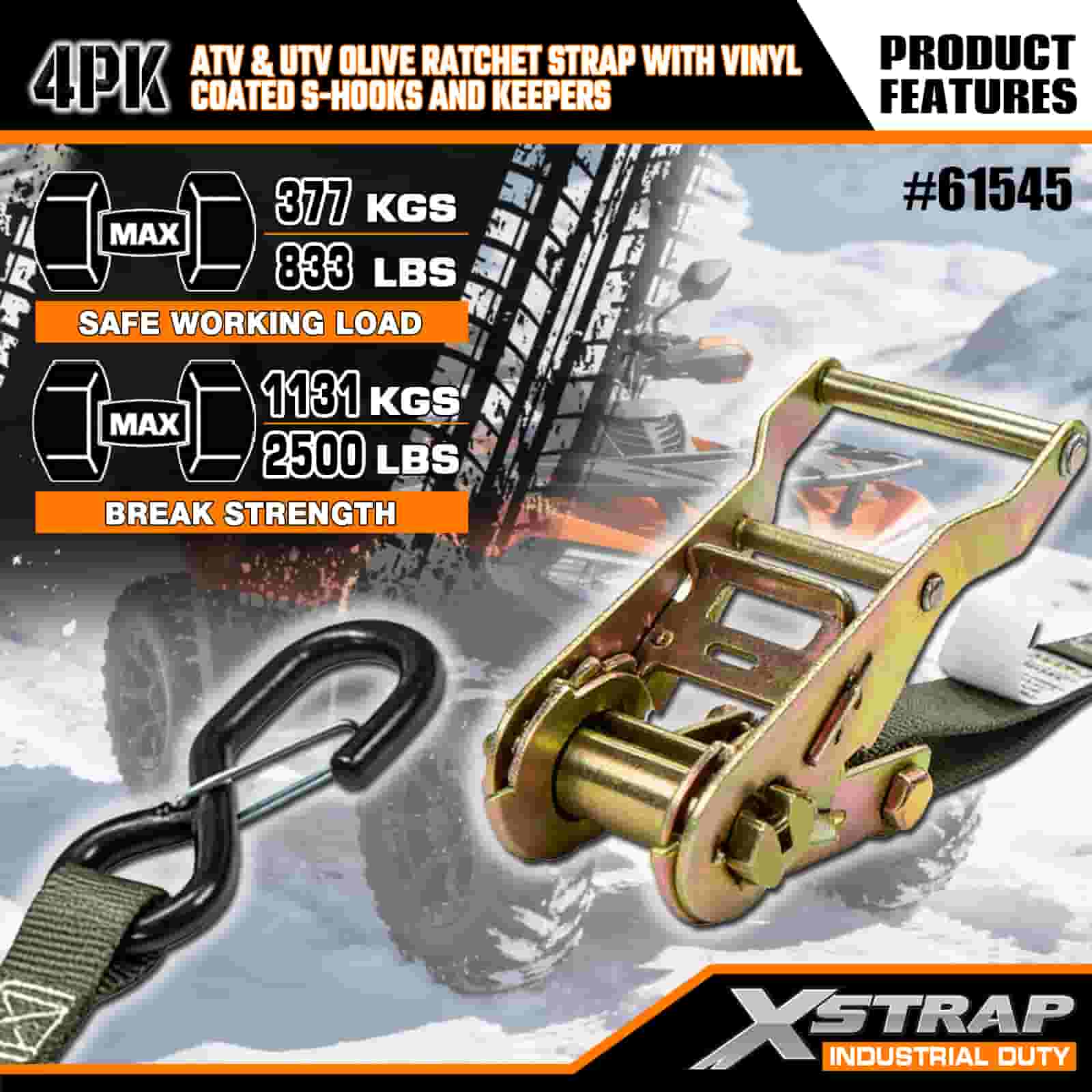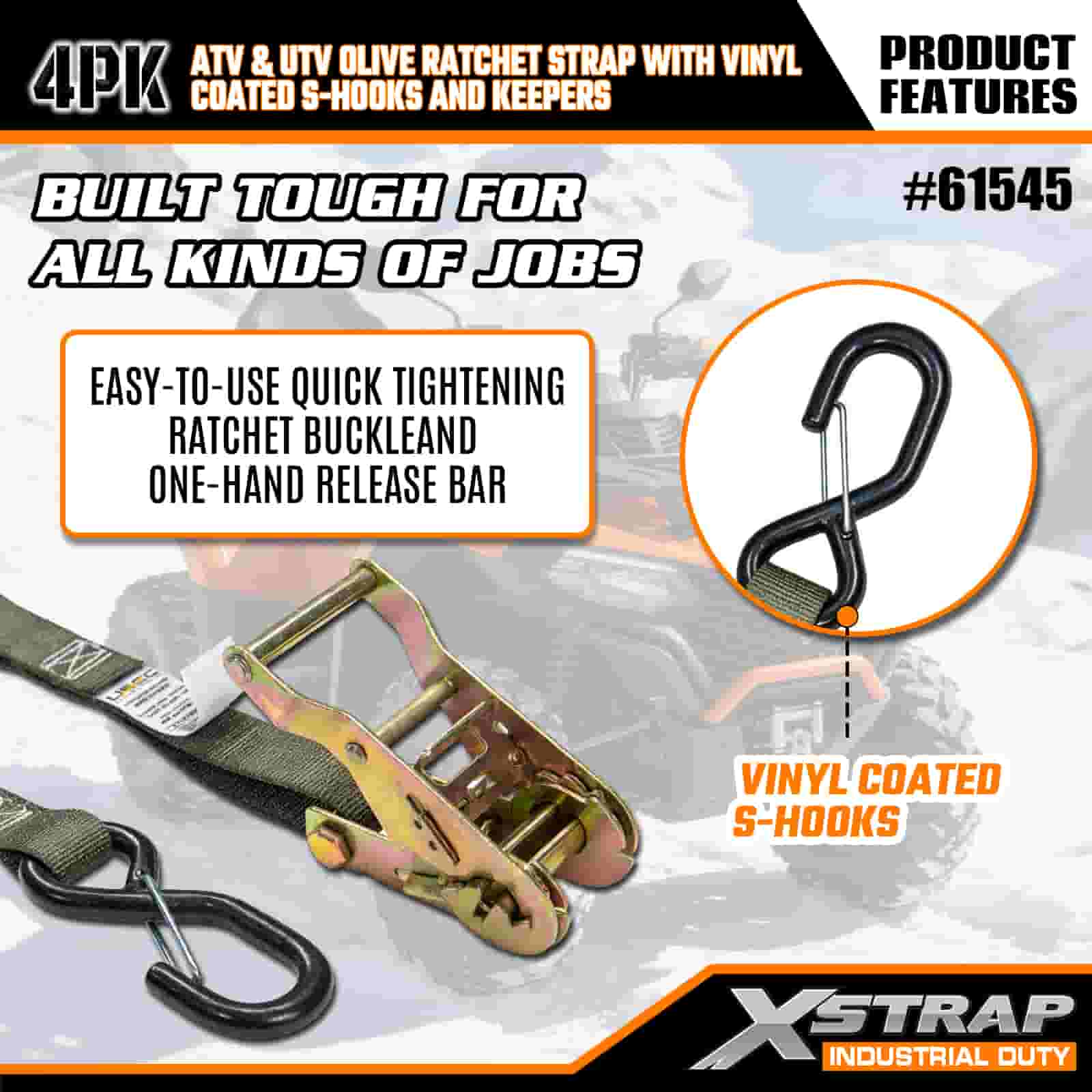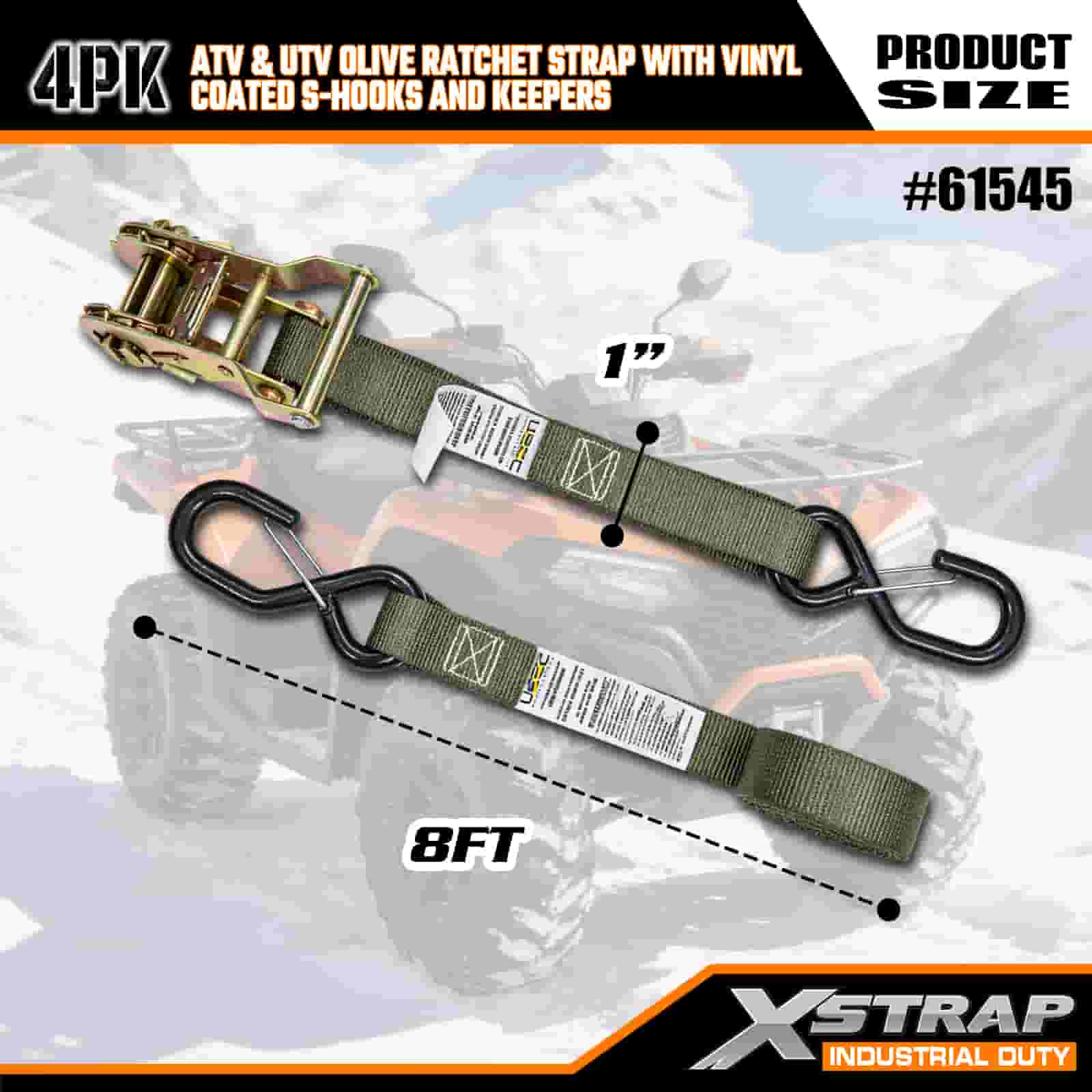 Xstrap 4PK Vinil Kaplamalı Güvenlik S Kancalı Cırcırlı Cırcır Kayışı, 1" x 8' Polyester Bağlama Kayışı Cırcır Kayışı, Ağır Hizmet Römorku, Düz Yataklı Römork Kayak Teknesi, Küçük Araba, Ağır Ekipman için 833 lbs Kapasiteli Güvenlik S Kancalı Kargo Bağlama Sabitleme Kayışları.