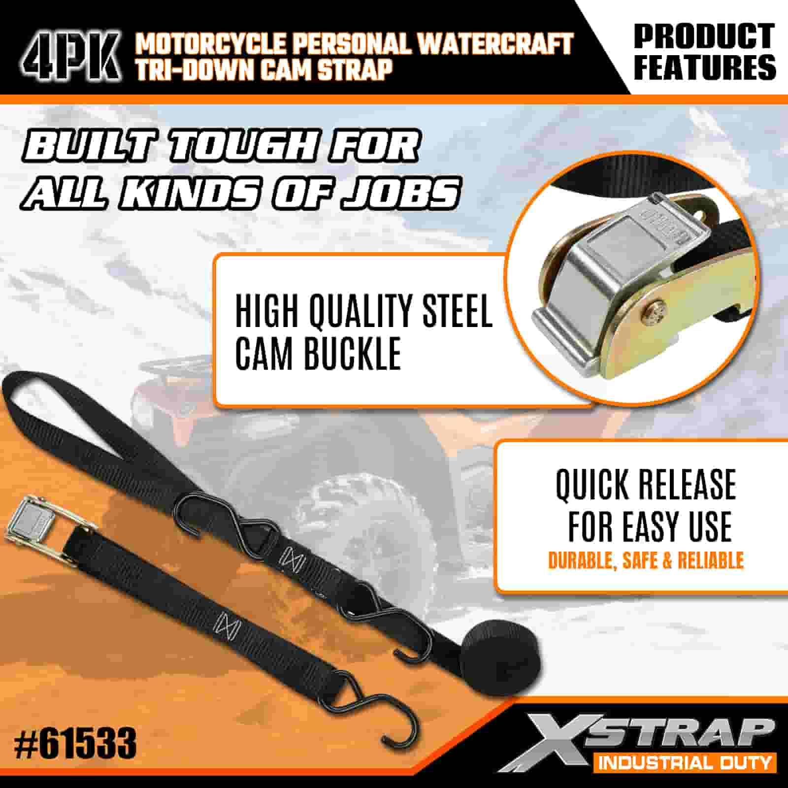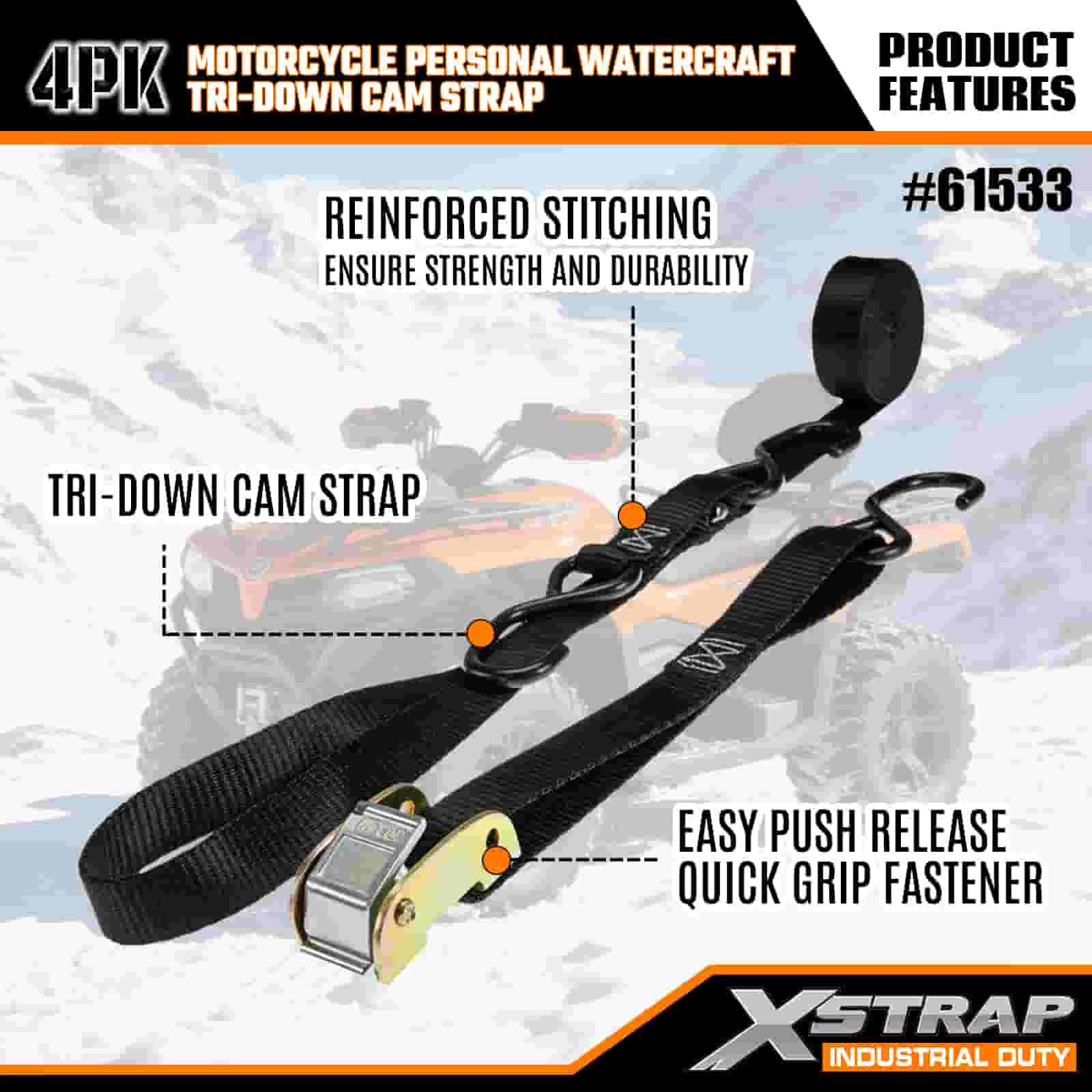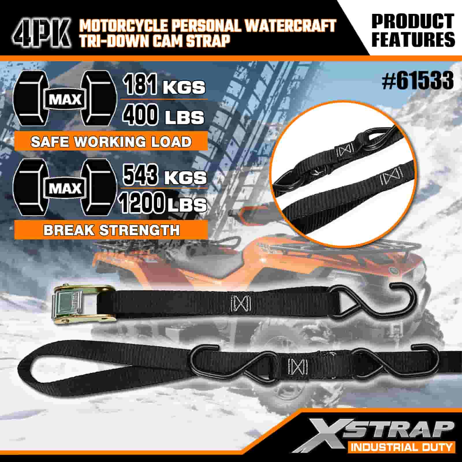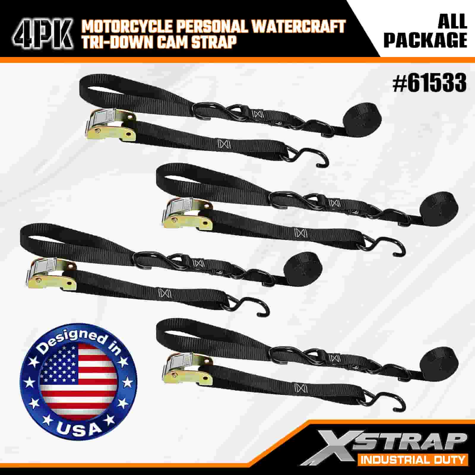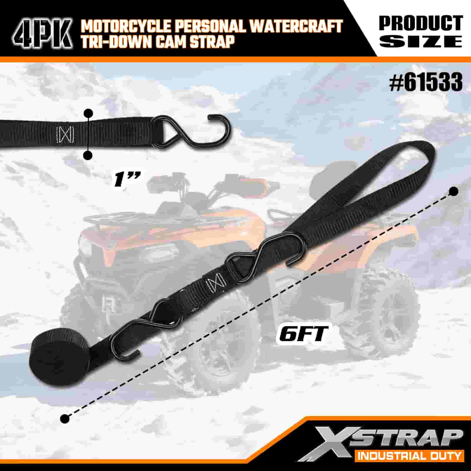 Xstrap 4PK Motosiklet Kişisel Deniz Taşıtları Üçlü Aşağı Kam Kayışı, 1" x 6' Polyester Bağlama Kayışı Çekme Cırcırlı Toka Kayışı, Ciddi Profesyoneller için Kargo Römorkunu, Düz Yataklı Römorku, Kayak Teknesini, Küçük Arabayı Korumak için S Kancalı 400lbs Kapasiteli Kargo Bağlama Sabitleme Kayışları.