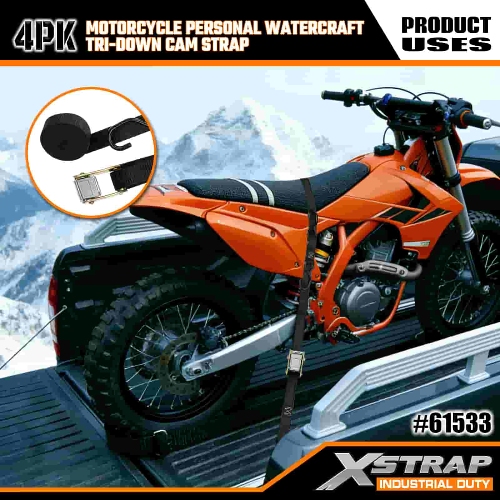 - Özel Kullanıma Yönelik 4'lü Paket 6FT Askılar: 4'lü askı seti (1 inç genişlik × 6 fit uzunluk) olarak satılır; taşıma veya depolama sırasında motosikletleri, kişisel deniz taşıtlarını ve küçük eşyaları sabitlemek için idealdir.