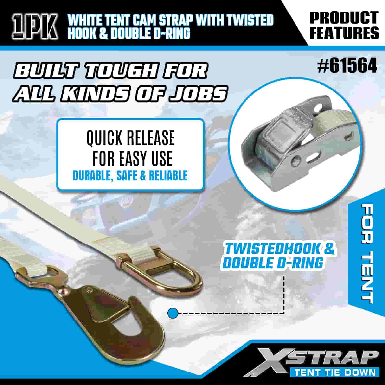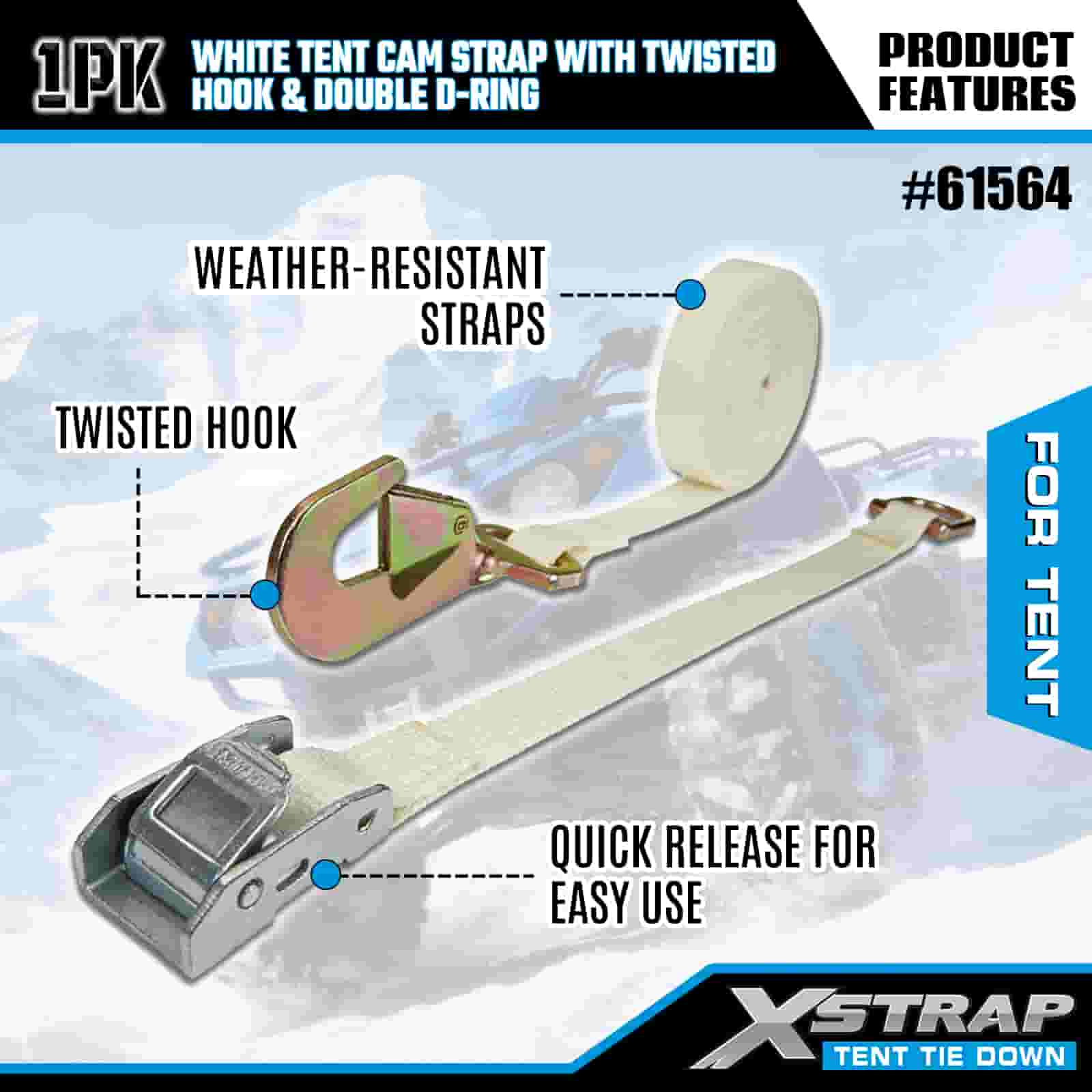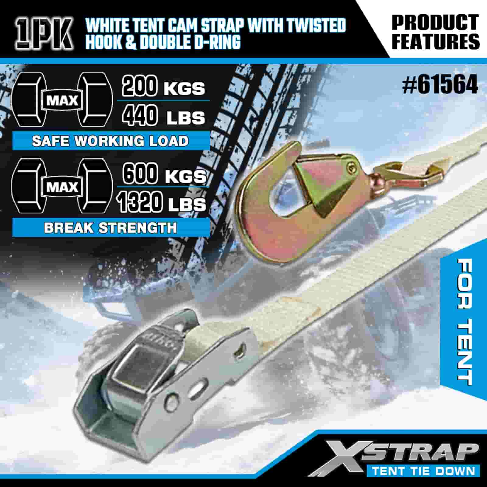 - Kamp ve Etkinlik Temelleri, Rüzgar ve Hava Koşulları İçin Tasarlandı: Çadırları, gölgelikleri ve etkinlik barınaklarını korumak için özel olarak tasarlanan bu kam kayışı, şiddetli rüzgarlarda veya yağmurda bile dış mekan kurulumunuzu sabit tutar. XStrap'in 20 yıllık kargo kontrol uzmanlığı, hava durumu ne olursa olsun barınağınızın demirli kalmasını sağlar.