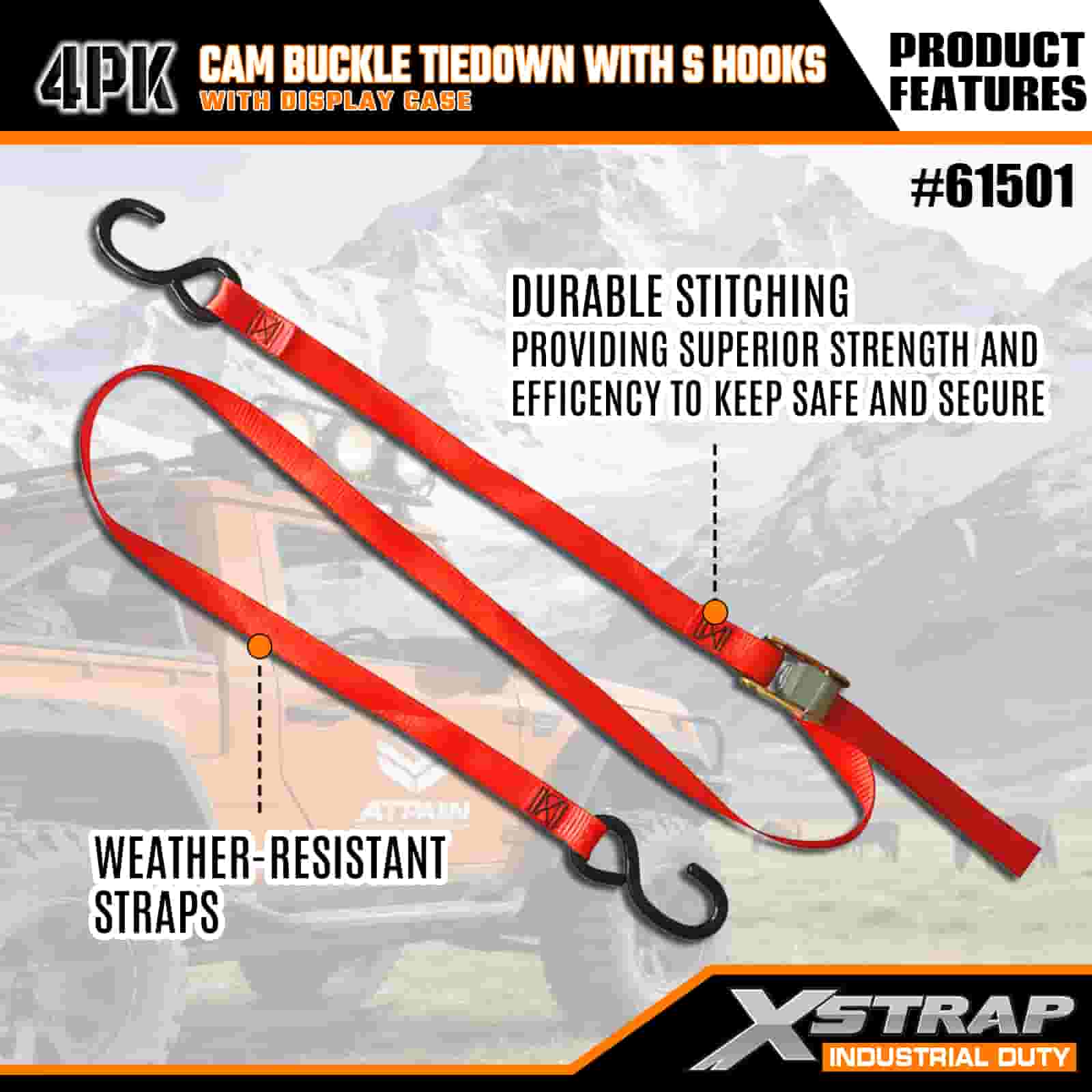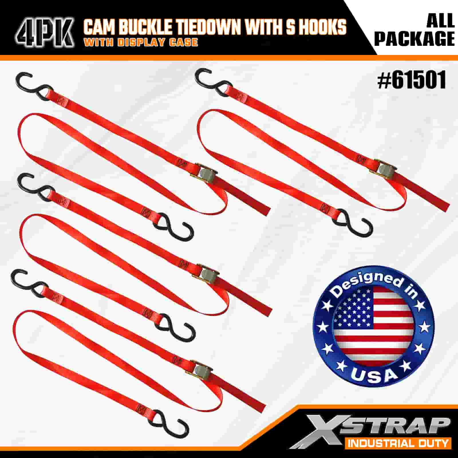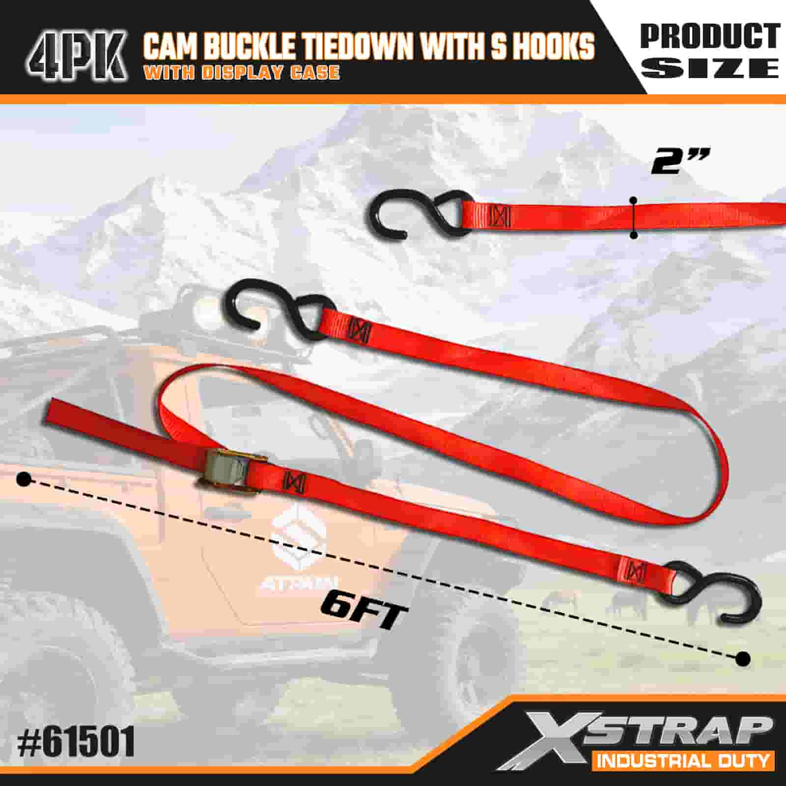 Xstrap 4 Paket S Kancalı Kam Tokalı Bağlama, 2" x 6' Polyester Tokalı Bağlama Kayışı, Ciddi Profesyoneller için Güvenli Kargo Römorku, Düz Yataklı Römork, Kayak Teknesi, Küçük Araba için S Kancalı 400lbs Kapasiteli Kargo Bağlama Sabitleme Kayışları.