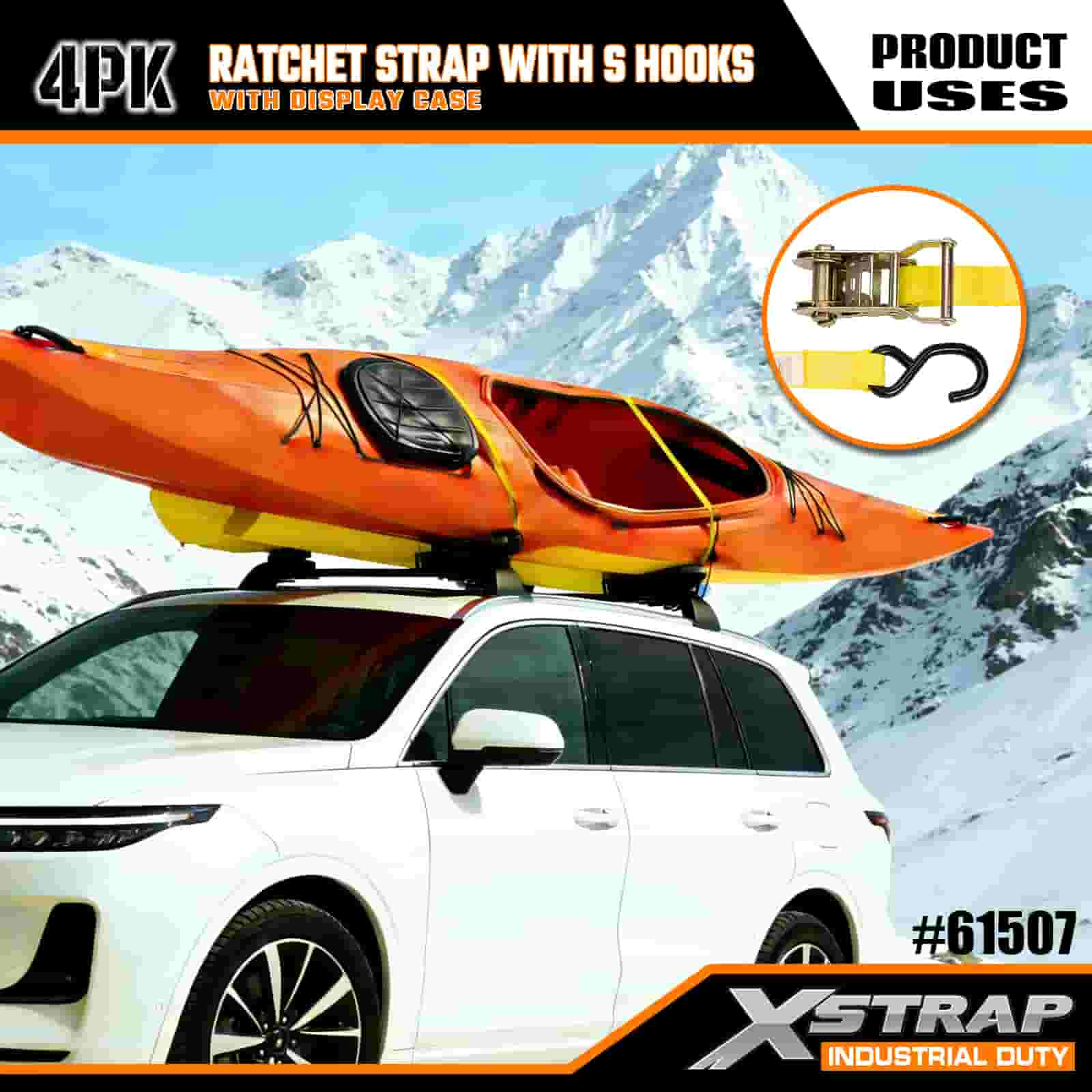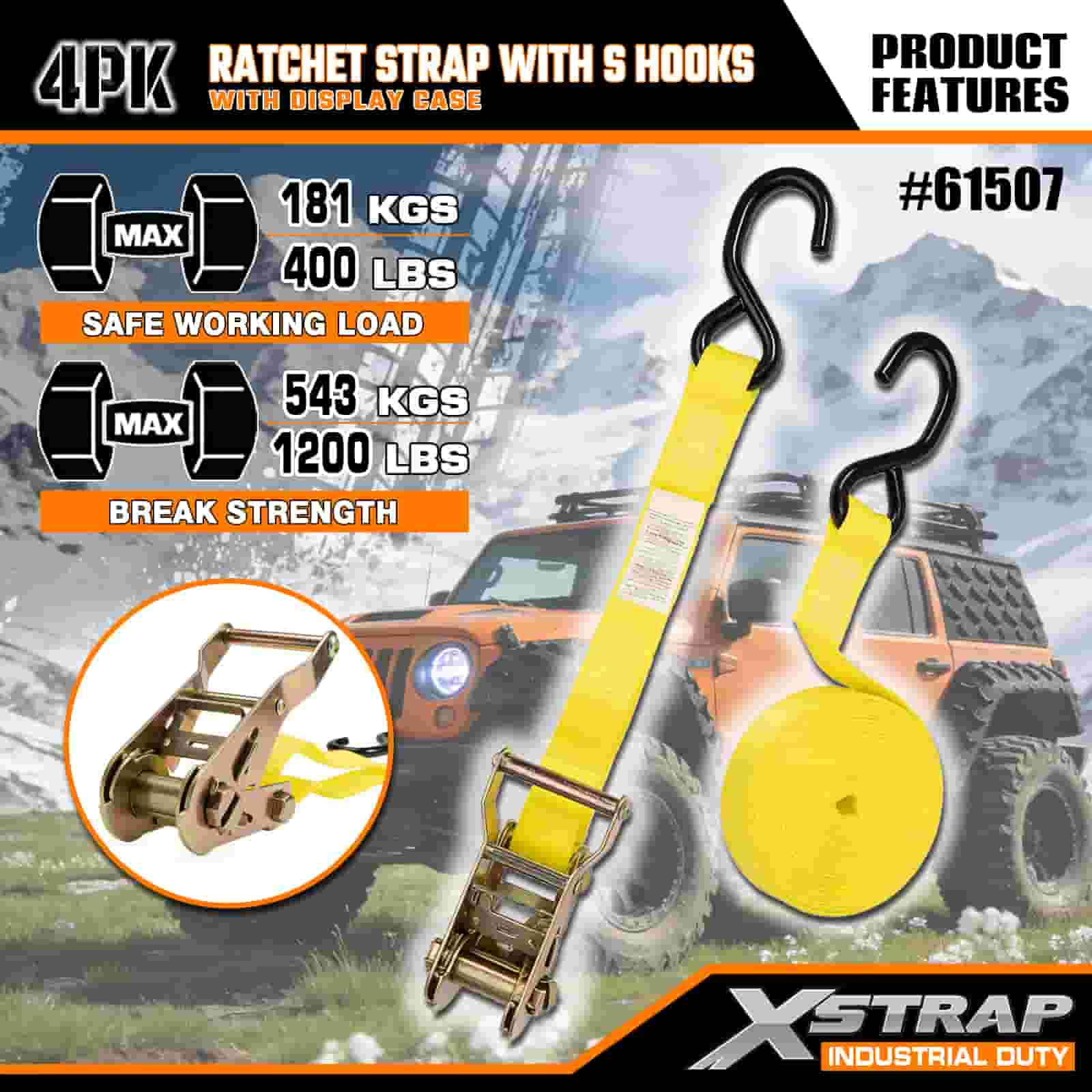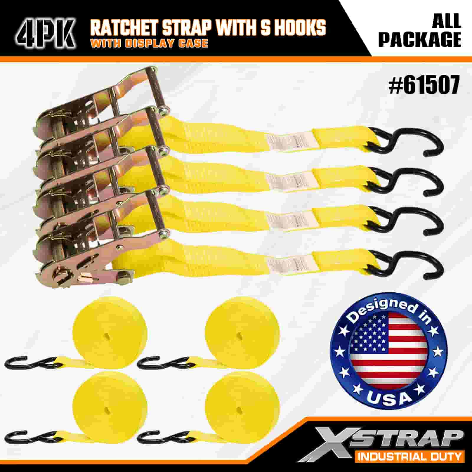 Xstrap 4 Paket S Kancalı Cırcır Kayışı, 1" x 15' Polyester Bağlama Kayışı Çekme Cırcır Kayışı, Ciddi Profesyoneller için Güvenli Kargo Römorku, Düz Yataklı Römork, Kayak Teknesi, Küçük Araba için S Kancalı 400 lbs Kapasiteli Kargo Bağlama Sabitleme Kayışları.