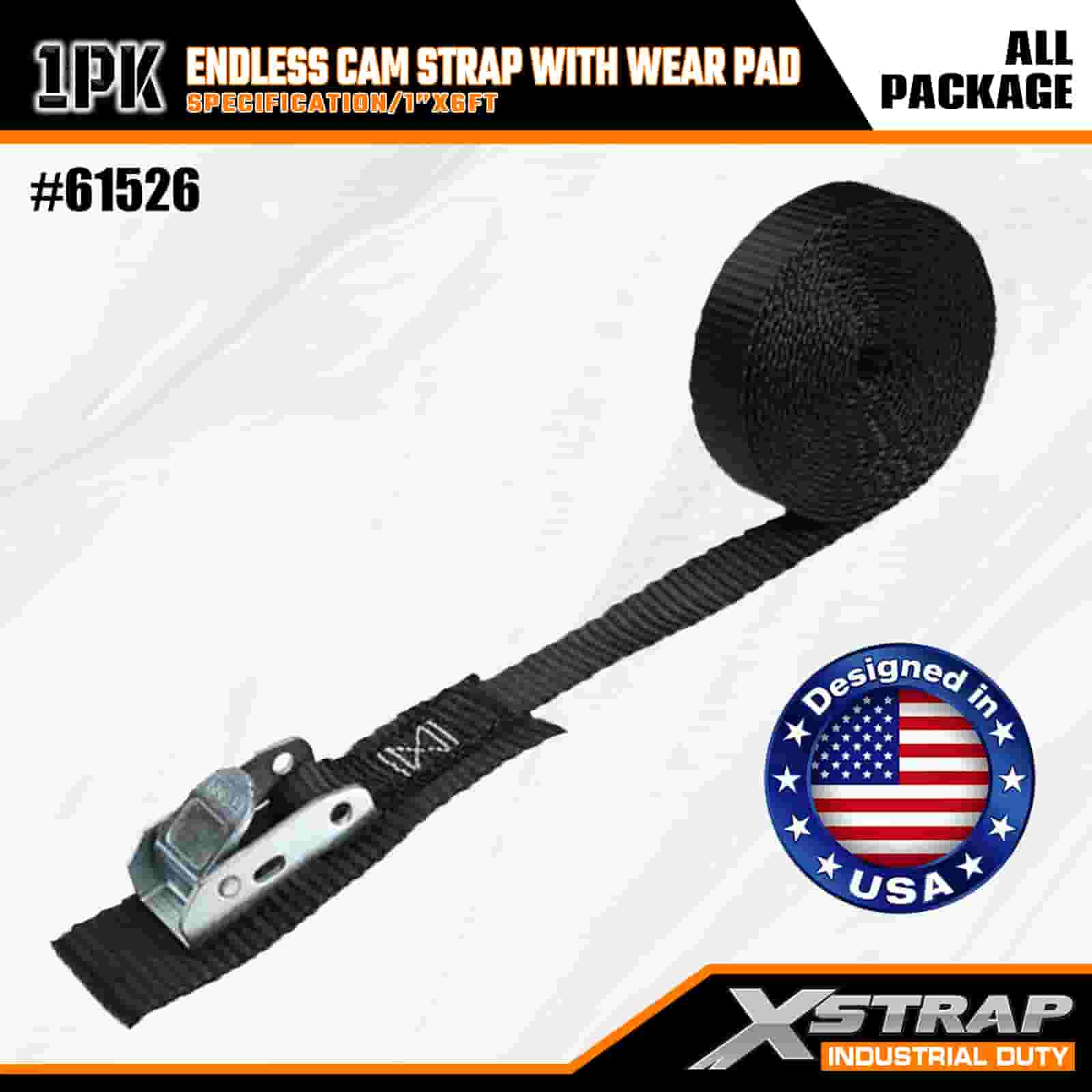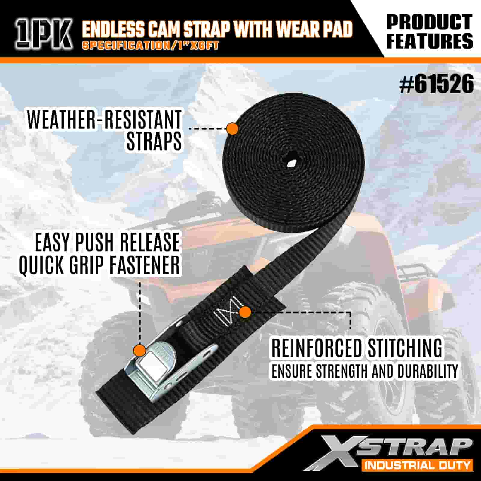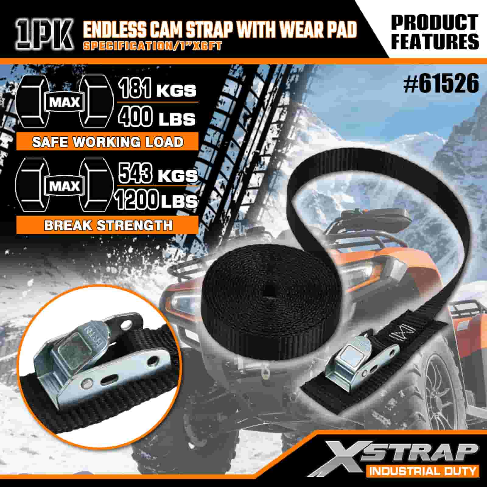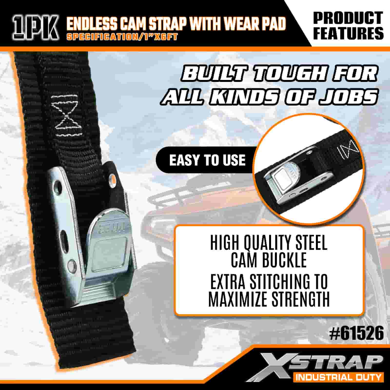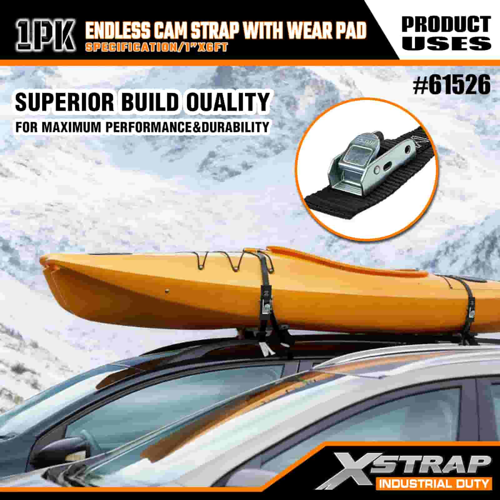 Aşınma Pedli Xstrap Sonsuz Kam Kayışı, 1" x 6' Polyester Bağlama Kayışı Çekme Kam Tokası Kayışı, Ciddi Profesyoneller için Kargo Römorku, Düz Yataklı Römork, Kayak Teknesi, Küçük Arabayı Güvenli Hale Getirmek için 400lbs Kapasiteli Kargo Bağlama Sabitleme Kayışları.