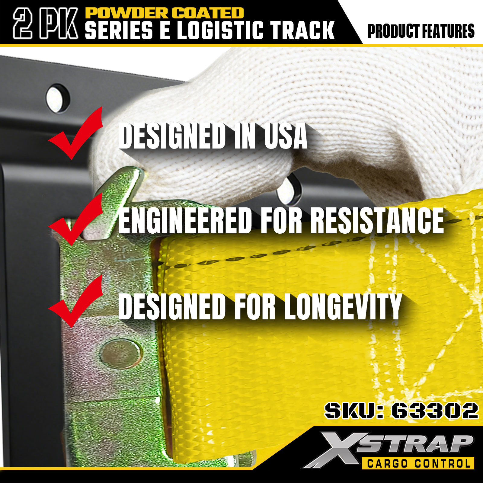 Xstrap 63302 4 ft Gri E Lojistik Ray - Toz Boyalı 12 Kalibre Çelik, 6000 LBS Kapasite, Kargo Kontrolü için 2PK