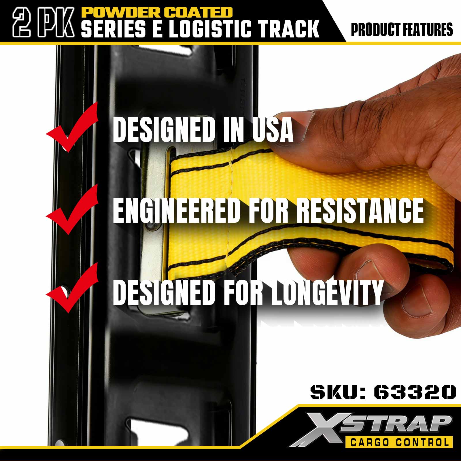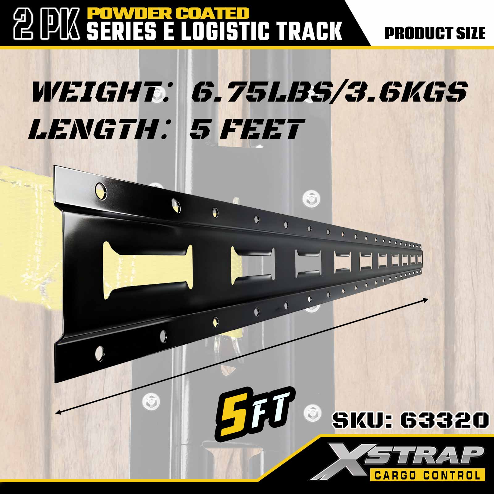Xstrap 63320 5 ' Gri E-Tipi Lojistik Rayı - Toz Boyalı 12 Kalibre Çelik, 6000 LBS Yük Kapasitesi, Kargo Kısıtlaması için 2PK
