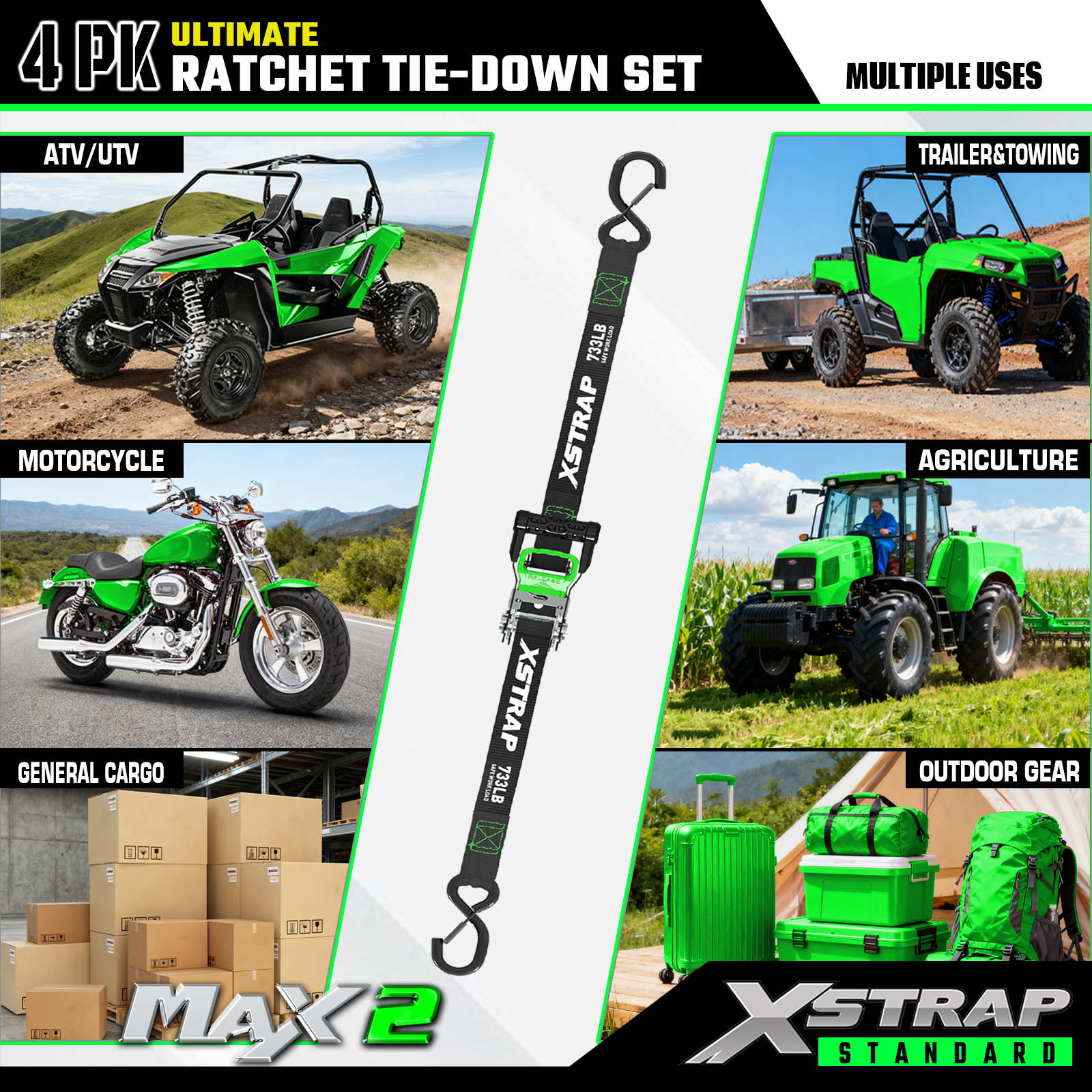 - Güvenilir taşıma: 4 parçalı cırcırlı bağlama kayışları 733 lb SWL ve 2.200 lb BS sunar. Motosikletler, aletler ve çim ekipmanları için güvenli taşıma sağlayabilir