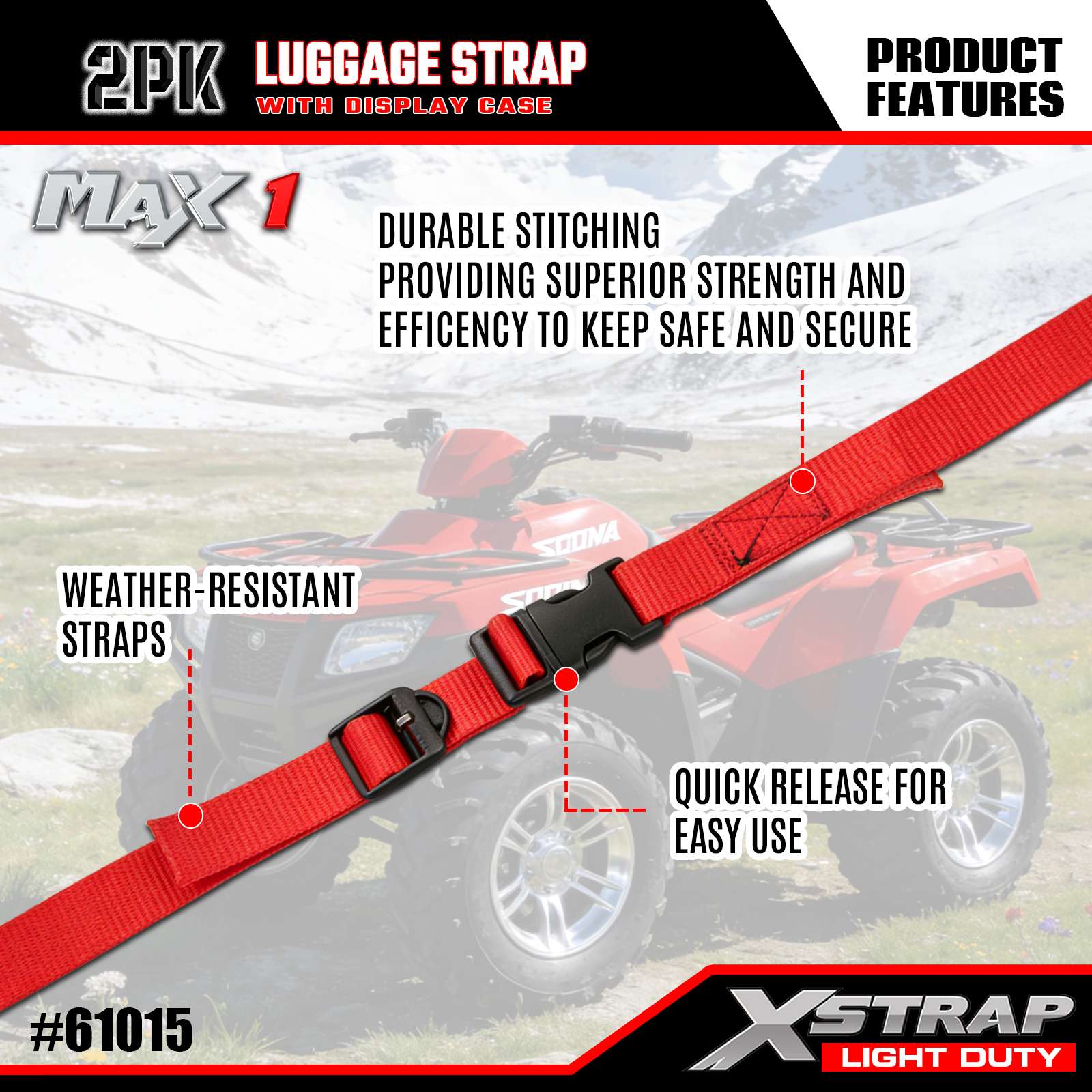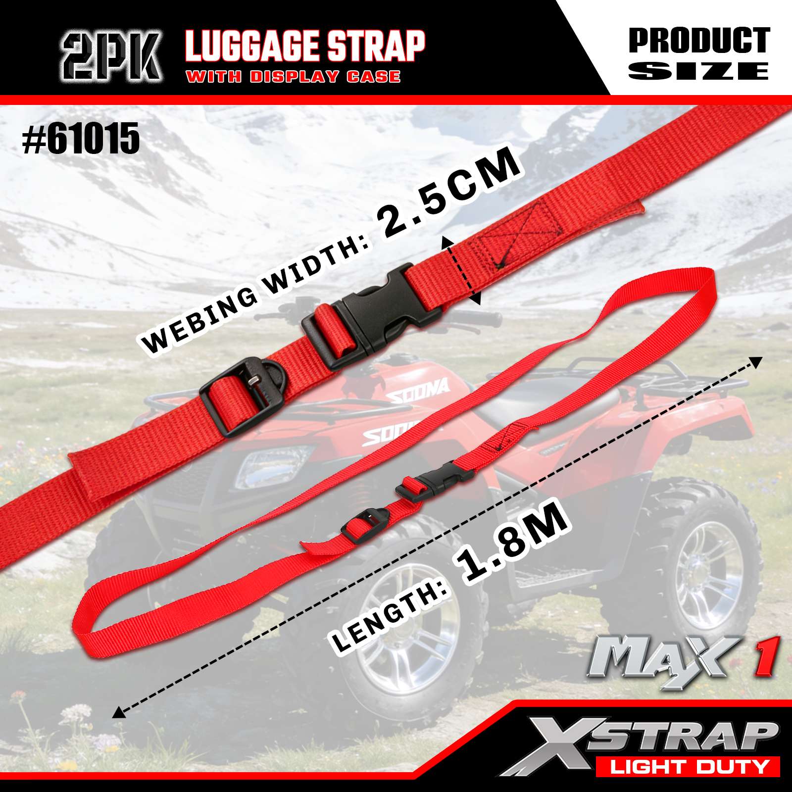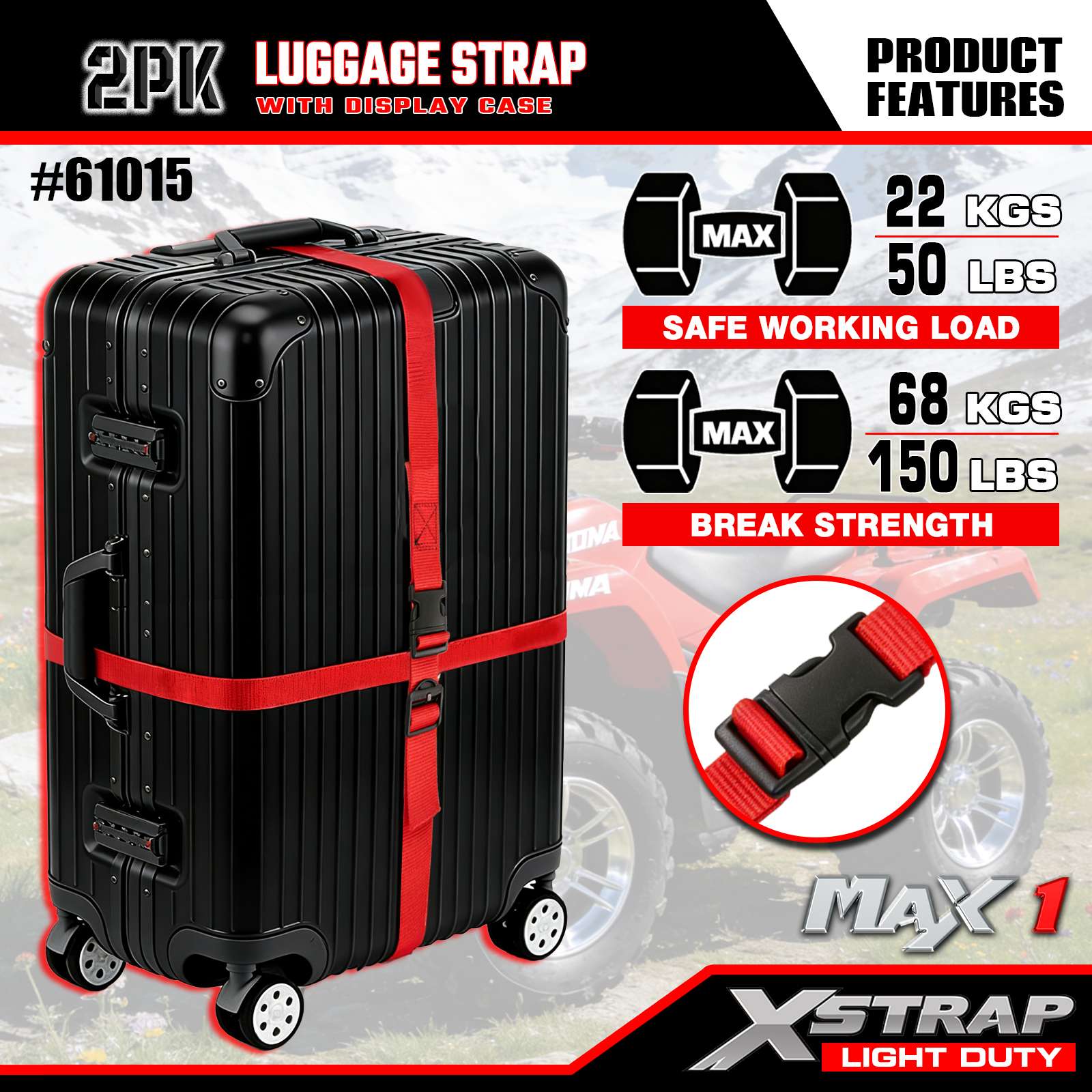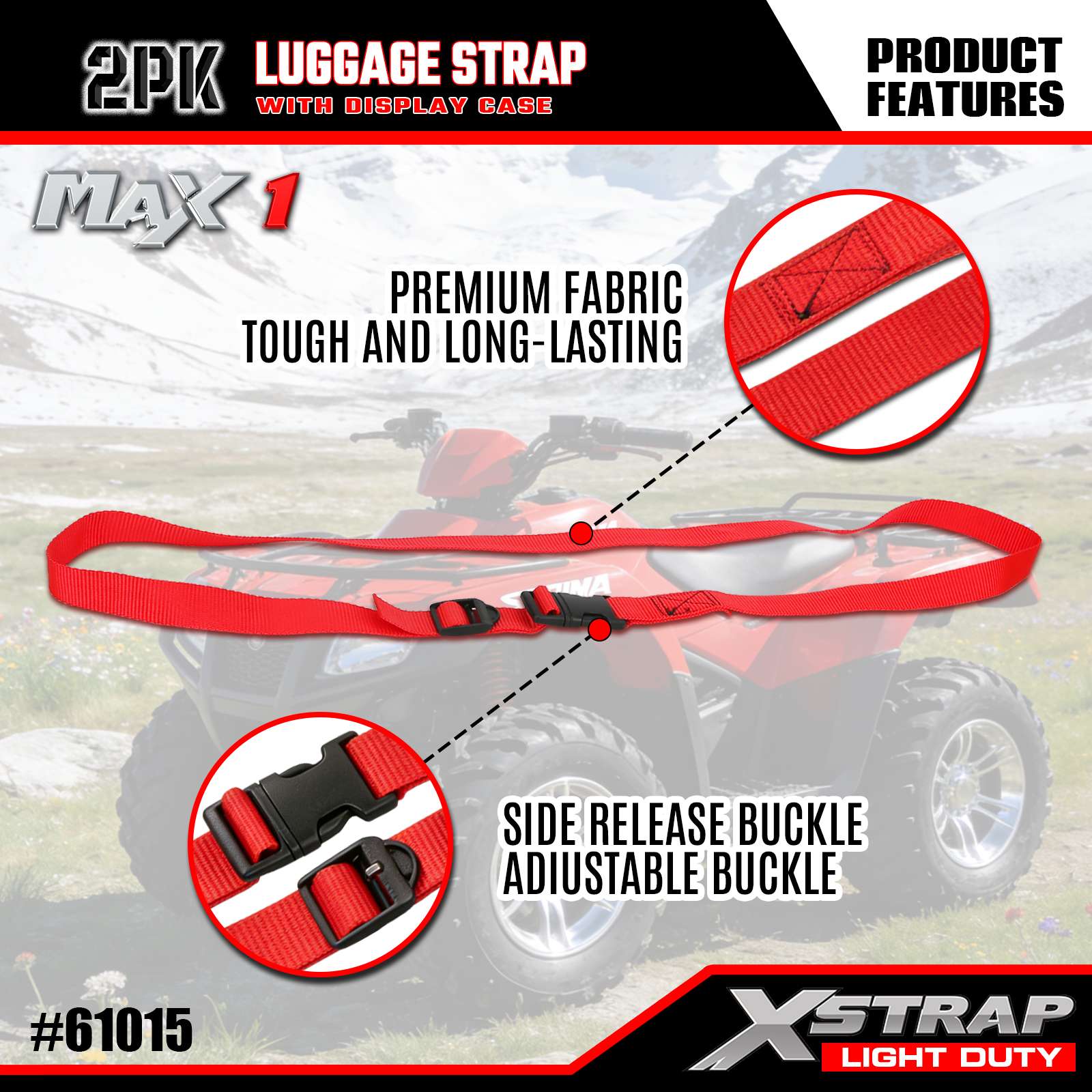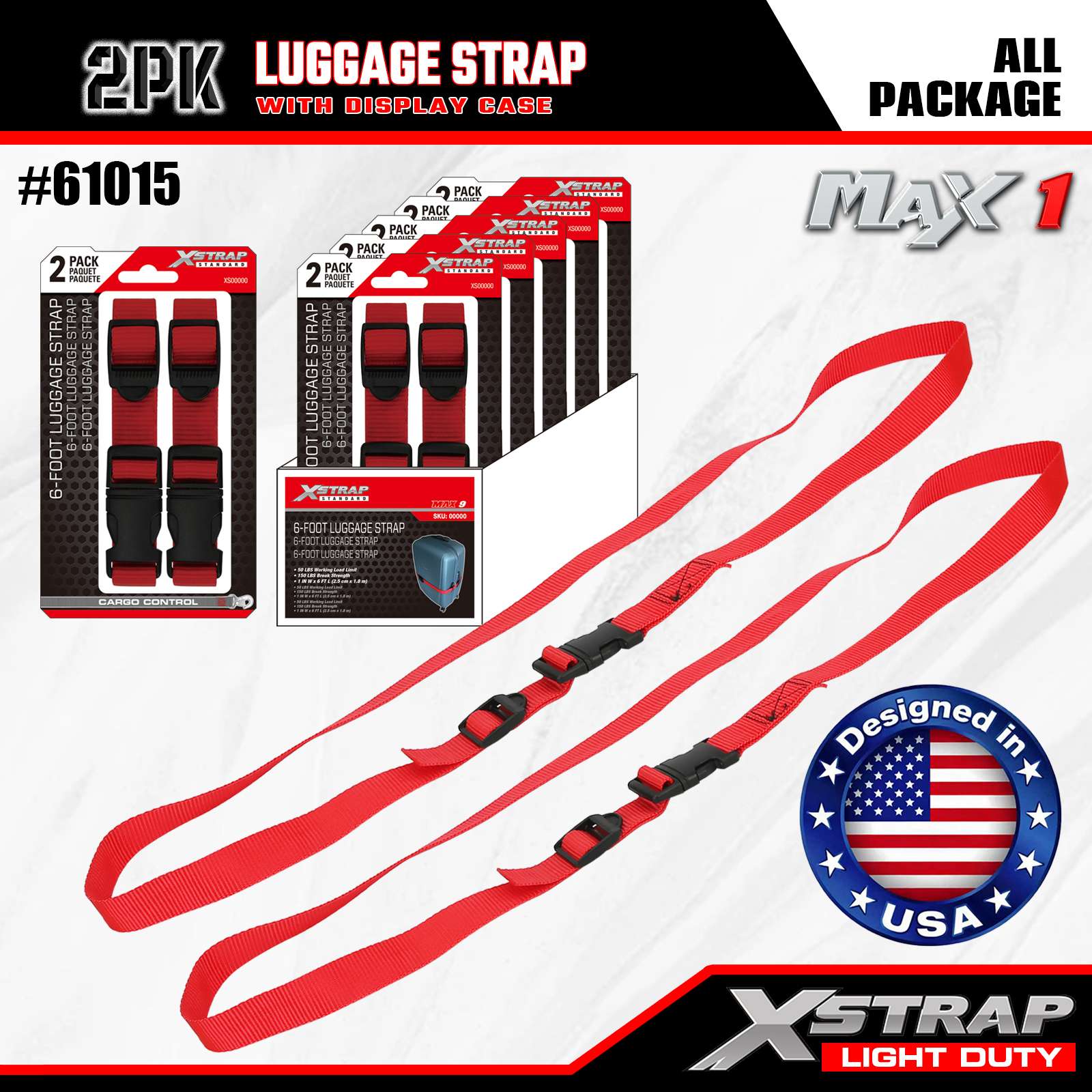 Xstrap 2 Paket Ayarlanabilir Bagaj Askıları, 1" x 6' - 50 Lbs Yük Kapağı - 150 Lbs Kırılma Mukavemeti - Bavullar için Kargo Askıları, Tanımlanması Kolay Seyahat Kemeri Konektörü Valizi Bir Arada Tutar, Çantanın Ömrünü Uzatır, Kayış İki Çantayı Birbirine Bağlar, Kırmızı