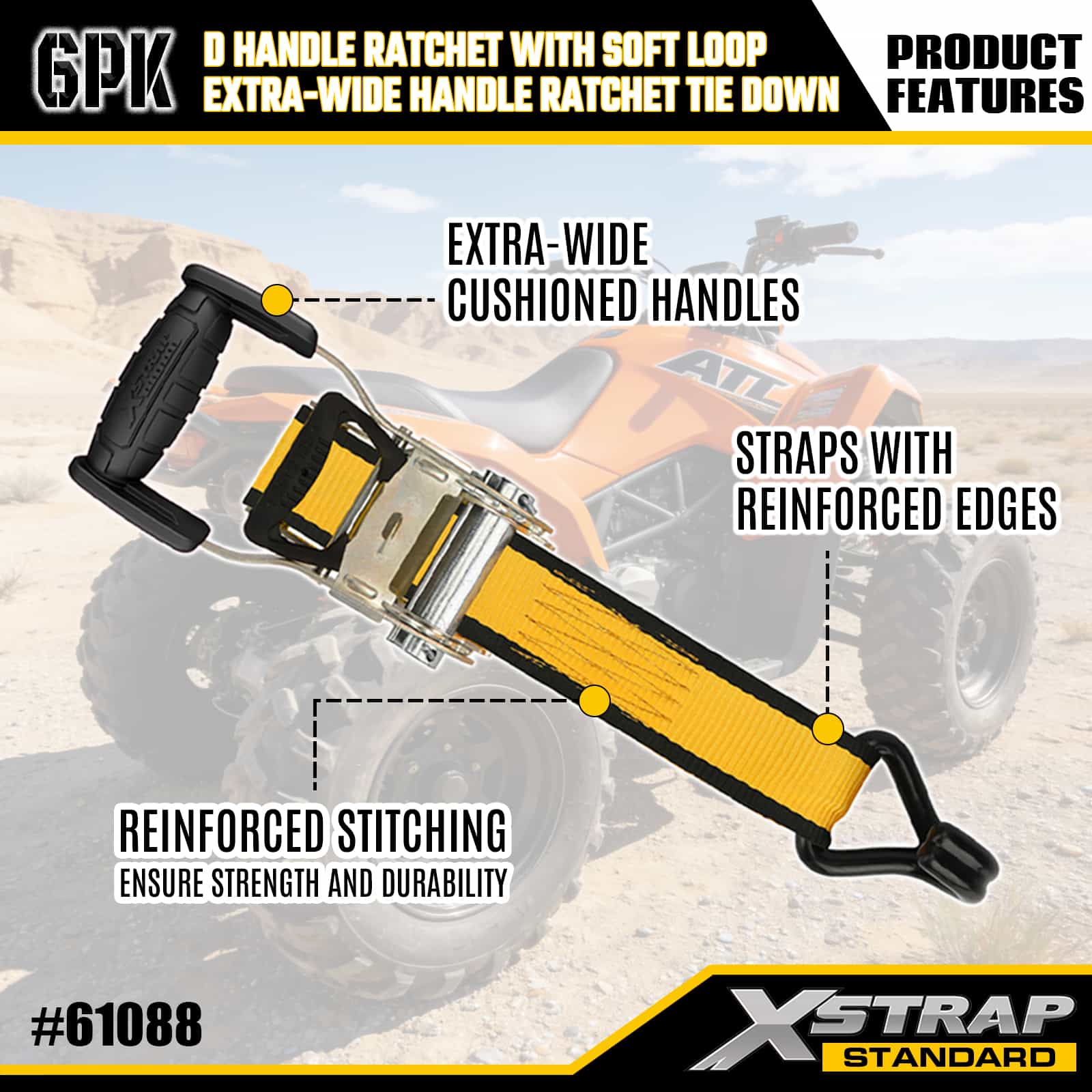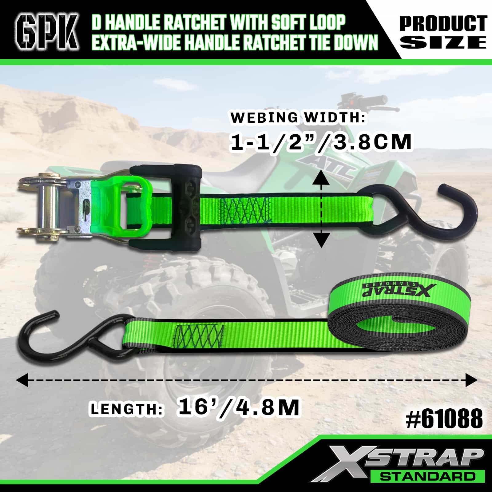 2PK 1"x 14' Yumuşak Döngülü D Saplı Cırcır ve 6PK 1"x 16'Ekstra Geniş Saplı Cırcır Bağlamalı