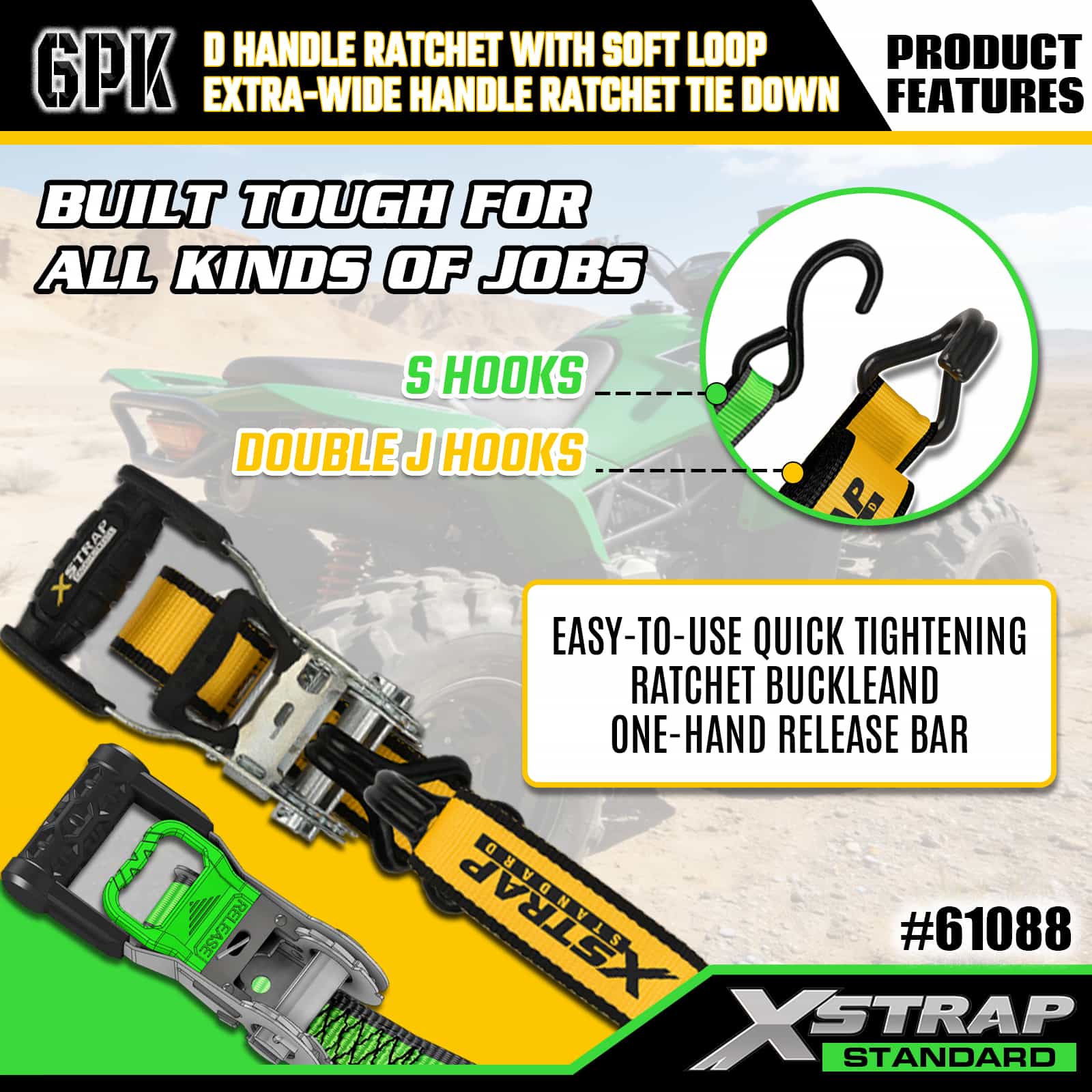 Xstrap 6 Paket Alüminyum Cırcırlı Bağlama, 1" x 14' ve 1" x 16' Polyester Bağlama Kayışı Çekme Cırcır Kayışı, 500 lbs ve 1100 lbs Kapasiteli Kargo Bağlama Sabitleme Kayışları, Kargo kontrolü için S Kancalı ve Çift J Kancalı Kamyonet, SUV, Araba Üst Rafları Motosiklet.
