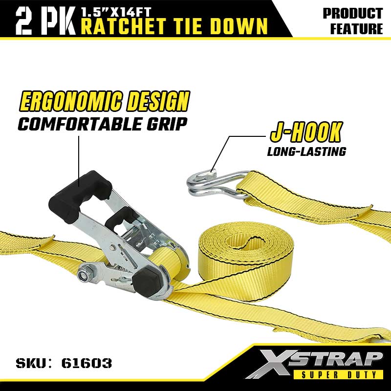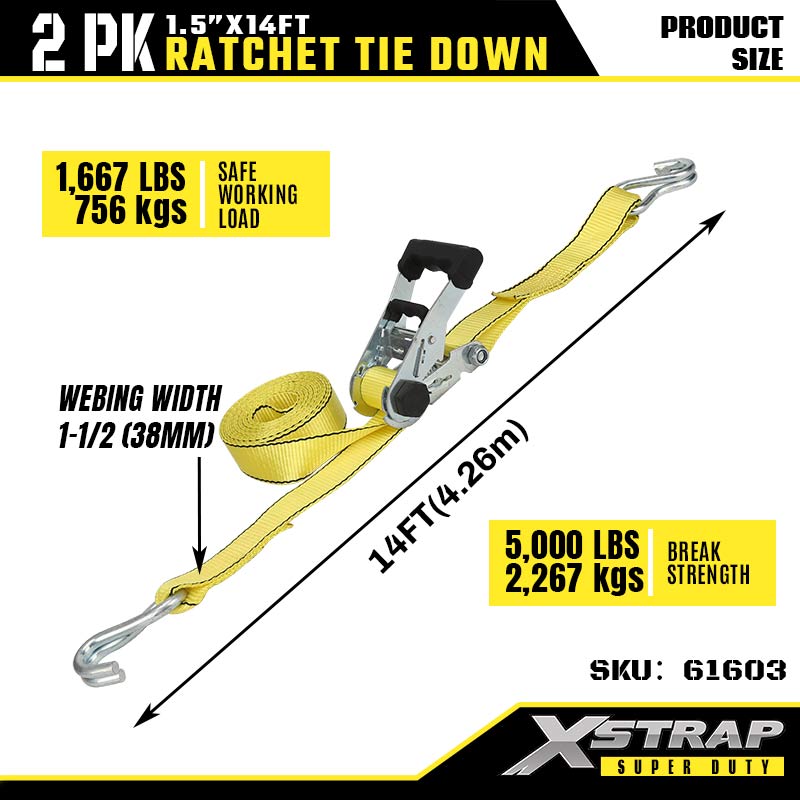 Xstrap 4 Paket T Saplı Cırcırlı Bağlama, 1-1/2" x 14' Polyester Bağlama Kayışı Çekme Cırcır Kayışı, 1667lbs Kapasiteli Kargo Bağlama Sabitleme Kayışları, Ciddi Profesyoneller için Çift J Kancalı Kargo Gooseneck Römorku, Ağır Hizmet Römorku, Düz Yataklı Römork Kayak Teknesi, Küçük Araba, Ağır Ekipman.