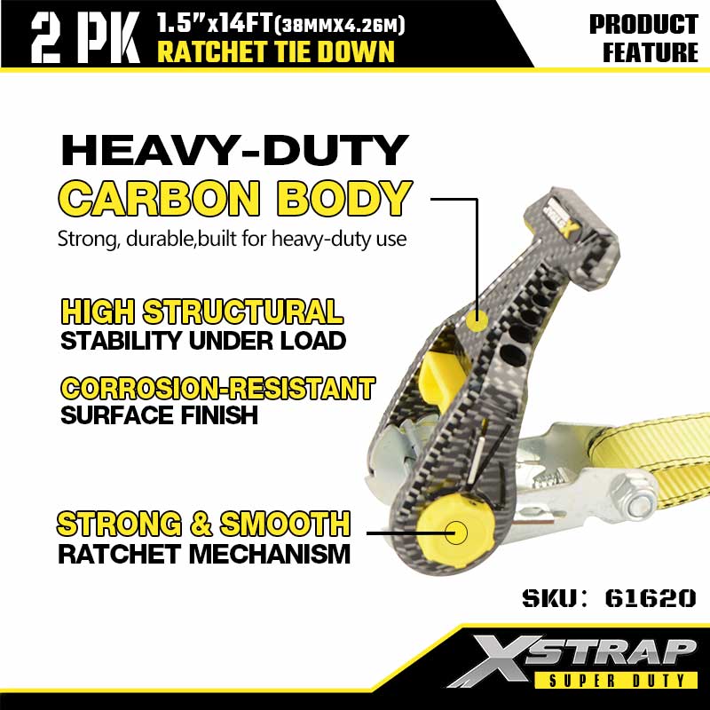 - Pürüzsüz Karbon Fiber Cırcır Çalışması: Kullanışlı metal mandalları atlayın. Karbon fiber gövde güçlü ancak hafiftir ve pürüzsüz mekanizma, ağır yükleri tek elle saniyeler içinde gerdirmenize ve kilitlemenize olanak tanır. İlk kez kullananlar bile ekstra alete ihtiyaç duymadan sıkı ve sağlam bir tutuşabilir.